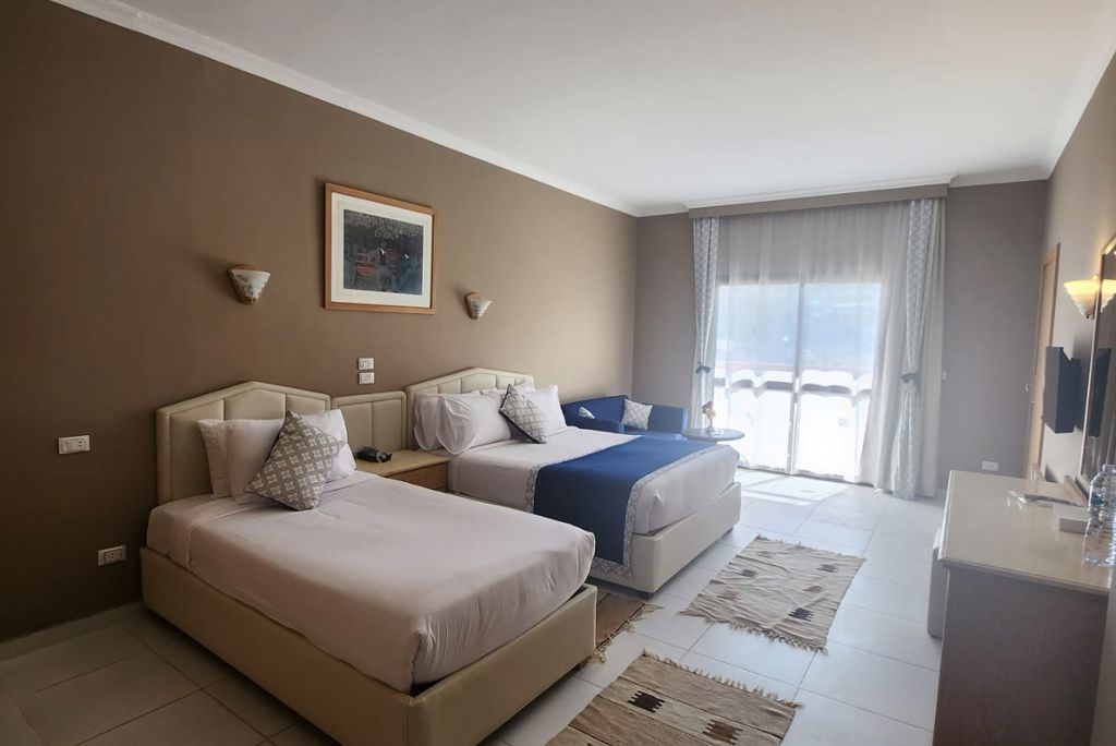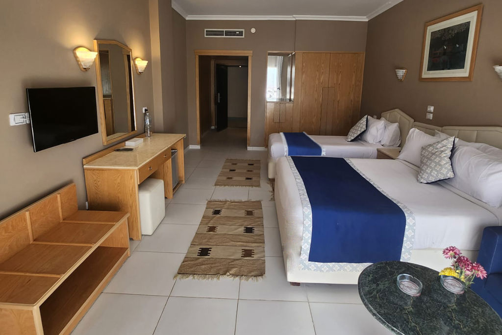 Winter Wanneer je tussen 01-11-2025 en 31-03-2026 in deze accommodatie verblijft, is onderstaande informatie van toepassing. * Ligging * In het centrum van Hurghada * Gelegen aan het privéstrand * Luchthaven op circa 9 kilometer * Algemeen & faciliteiten * 4 gebouwen * 417 kamers * Wifi in diverse openbare ruimtes * Tuin * Restaurants & bars * Buffetrestaurant * À-la-carterestaurant * Italiaans restaurant * Restaurant * Barbecue restaurant * 4 drinkgelegenheden * Beachbar * Koffiecorner * Lobbybar * Poolbar * Activiteiten & ontspanning * Biljart * Duikcentrum tegen betaling * Padellen tegen betaling materiaal tegen betaling * Squash * Tafeltennis * Tennis tegen betaling * Watersporten tegen betaling * Spa Center * Sauna * Turks stoombad * Stoombad * Bubbelbad binnen * Massages tegen betaling * Fitnessruimte * Animatie * Shows * Zwembaden * 2 buitenzwembaden * Aquapark * Zonneterras * Kinderfaciliteiten * Mini club (4-12 jaar) * Minidisco * Verzorging * All Inclusive * Ontbijt in buffetvorm (07.00-10.00 uur) * Laat ontbijt in buffetvorm (10.30-11.30 uur) * Lunch in buffetvorm (13.00-15.00 uur) * Diner in buffetvorm (19.00-22.00 uur) * Snacks (13.00-17.00 uur) * Selectie lokale (non-)alcoholische drankjes (10.00-00.00 uur) * Goed om te weten * Werkzaamheden in deze accommodatie kunnen tussen maandag 1 december 2025 en zaterdag 28 februari 2026 voor eventuele hinder/overlast zorgen, zijn in een specifiek gedeelte van de accommodatieHotelkamers * 2-persoonskamer (Regal) D1 * Airconditioning * Kluisje * Satelliettelevisie * Eet- en drinkfaciliteiten * Mini koelkast * Badkamer douche, toilet en föhn * Balkon of terras * 2-persoonskamer Superior DS * Zijzeezicht * Zwembadzicht * Airconditioning * Kluisje * Satelliettelevisie * Eet- en drinkfaciliteiten * Mini koelkast * Badkamer douche, toilet en föhn * Balkon of terras