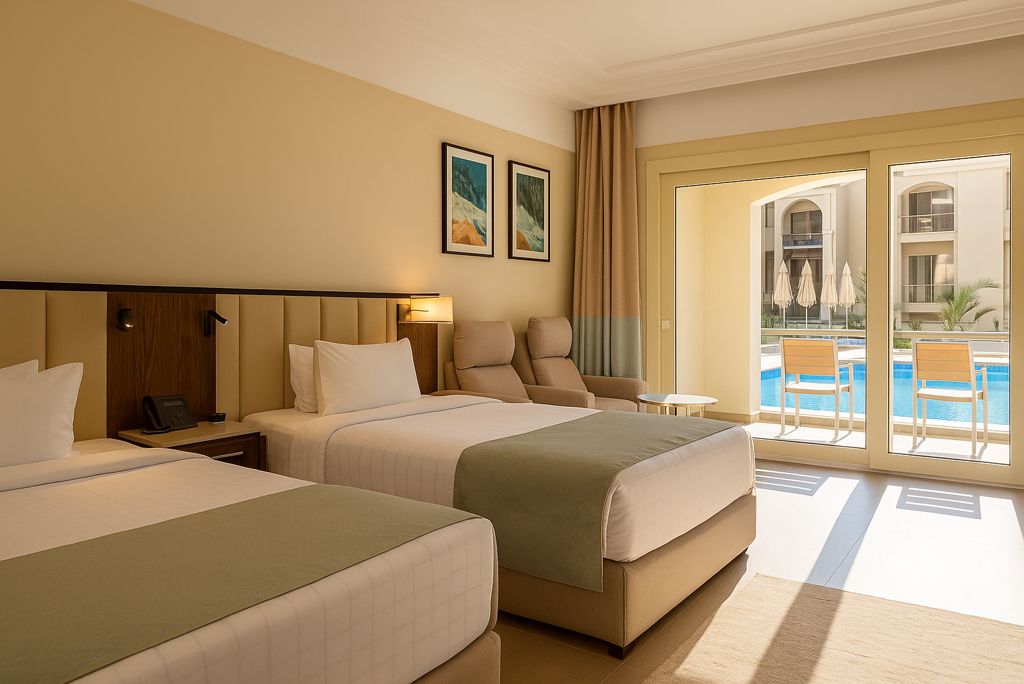 Winter Wanneer je tussen 01-11-2025 en 31-03-2026 in deze accommodatie verblijft, is onderstaande informatie van toepassing. * Ligging * In het centrum van Sahl Hasheesh * Gelegen aan het privéstrand * Zandstrand * Ligbedden * Parasol * Dichtstbijzijnde restaurant op circa 2 kilometer * Dichtstbijzijnde bar op circa 2 kilometer * Hurghada op circa 30 kilometer * Algemeen & faciliteiten * 3 gebouwen * Maximaal 4 verdiepingen * 380 kamers * Receptie * 24 uur per dag * Lobby * 10 liften * Lift in elk gebouw * Bagageruimte * Wifi in alle openbare ruimtes * Meerdere winkels * Minimarkt * Wasservice tegen betaling * Doktersservice tegen betaling * Tuin * Privé parkeergelegenheid * Restaurants & bars * Buffetrestaurant * 3 à-la-carterestaurants (vooraf reserveren) * Aziatisch restaurant * Italiaans restaurant * Mediterraans restaurant * Restaurant * Visrestaurant (vooraf reserveren) tegen betaling * Snackbar * 5 drinkgelegenheden * 2 beachbars * 2 lobbybars * Poolbar * Activiteiten & ontspanning * Aerobics * Beachvolleybal * Darts * Duikcentrum tegen betaling * Fitness * Watersporten tegen betaling * Yoga * Spa Center * Sauna tegen betaling * Hamam tegen betaling * Bubbelbad binnen tegen betaling * Massages tegen betaling * Schoonheidsbehandelingen tegen betaling * Animatie voor volwassenen * 7 keer per week * Shows * 3 keer per week * Livemuziek * 3 keer per week * Zwembaden * 2 buitenzwembaden * Eén van deze zwembaden is verwarmd tussen ca. november en maart * Buitenzwembad voor kinderen * Verwarmd tussen ca. november en maart * Zonneterras * Ligbedden met matrasjes * Parasol * Badhanddoekenservice * Kinderfaciliteiten * Mini club (4-12 jaar) * Minidisco * Babybedje als preferentie toe te voegen in het boekingsformulier * Verzorging * Ultra All Inclusive * Ontbijt in buffetvorm (07.00-10.00 uur) * Laat ontbijt in buffetvorm (10.00-11.00 uur) * Lunch in buffetvorm (12.30-14.30 uur) * Diner in buffetvorm (18.30-21.30 uur) * Dineren in één van de à-la-carterestaurants 1 keer per verblijf * Snacks (12.30-17.00 uur) * IJs (12.30-17.00 uur) * Middernachtsnack (22.00-23.00 uur) * Selectie lokale (non-)alcoholische drankjes (10.00-00.00 uur) * Tegen betaling: import drankjes en roomserviceHotelkamers * 2-persoonskamer Club Strandzijde DC1 * Strandzijde * Airconditioning * Kluisje * Televisie * Telefoon tegen betaling * Eet- en drinkfaciliteiten * Koffie- en theefaciliteiten * Minibar * Badkamer douche, toilet en föhn * Wifi * Balkon of terras (zitje) * 2-persoonskamer Club Zijzeezicht Zijzeezicht DCI * Zeezicht * Airconditioning * Kluisje * Televisie * Telefoon tegen betaling * Eet- en drinkfaciliteiten * Koffie- en theefaciliteiten * Minibar * Badkamer douche, toiletartikelen, toilet en föhn * Wifi * Balkon of terras (zitje) * 2-persoonskamer Superior Gedeeltelijk uitzicht DSY * Oppervlakte tussen 38 en 42 m² * Gedeeltelijk zeezicht * Airconditioning * Kluisje * Televisie * Telefoon tegen betaling * Eet- en drinkfaciliteiten * Koffie- en theefaciliteiten * Minibar * Badkamer douche, toilet, föhn, badjassen en badslippers * Wifi * Balkon of terras (zitje) * 2-persoonskamer Premium Zwembadzicht DRP * Zwembadzicht * Airconditioning * Kluisje * Televisie * Telefoon tegen betaling * Eet- en drinkfaciliteiten * Koffie- en theefaciliteiten * Minibar * Badkamer douche, toilet, föhn, badjassen en badslippers * Wifi * Balkon of terras (zitje) * 2-persoonskamer Swimup Zwembadzicht DWP * Zwembadzicht * Airconditioning * Kluisje * Televisie * Telefoon tegen betaling * Eet- en drinkfaciliteiten * Koffie- en theefaciliteiten * Minibar * Badkamer douche, toilet, föhn, badjassen en badslippers * Wifi * Balkon of terras (zitje) * Gemakkelijke toegang tot het gedeelde zwembad