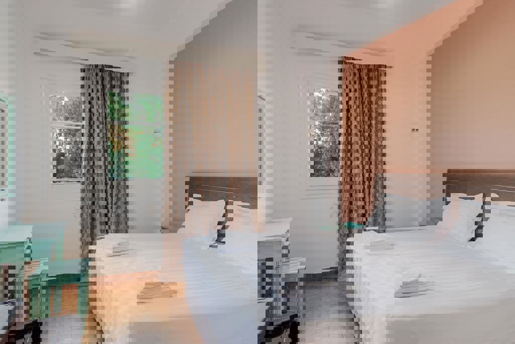 Winter Wanneer je tussen 15-04-2025 en 31-10-2026 in deze accommodatie verblijft, is onderstaande informatie van toepassing. * Ligging * Openbaar strand op circa 200 meter * Zandstrand * Centrum van Agios Georgios op circa 200 meter * Centrum van Argyrades op circa 5 kilometer * Centrum van Corfu stad op circa 30 kilometer * Dichtstbijzijnde winkel op circa 100 meter * Dichtstbijzijnde restaurant op circa 100 meter * Dichtstbijzijnde bar op circa 100 meter * Bushalte op circa 200 meter * Algemeen & faciliteiten * 1 gebouw * Maximaal 2 verdiepingen * 14 appartementen * Geen liften * Bagageruimte * Wifi in alle openbare ruimtes * Tuin * Openbare parkeergelegenheid * Restaurants & bars * Snackbar * Drinkgelegenheid * Poolbar * Activiteiten & ontspanning * Biljart * Zwembaden * Buitenzwembad * Buitenzwembad voor kinderen * Zonneterras * Ligbedden * Parasol * Kinderfaciliteiten * Babybedje op aanvraag via ons contact center * Verzorging * LogiesHotelkamers * Studio Standaard SZ * Oppervlakte van circa 17 m² * Airconditioning tegen betaling * Televisie * Kitchenette * 2-pits kooktoestel * Waterkoker * Mini koelkast * Badkamer douche, toilet en föhn * Wifi * Balkon of terras (zitje) * 2-kamerappartement Standaard 2AZ * Oppervlakte van circa 34 m² * Geen woonkamer * Eén slaapkamer met meerdere slaapplaatsen: 2 eenpersoonsbedden of een stapelbed * Airconditioning tegen betaling * Televisie * Kitchenette * 2-pits kooktoestel * Waterkoker * Koelkast * 2 badkamers * Meerdere badkamers met douche, toilet en föhn * Wifi gratis * Balkon of terras (zitje)