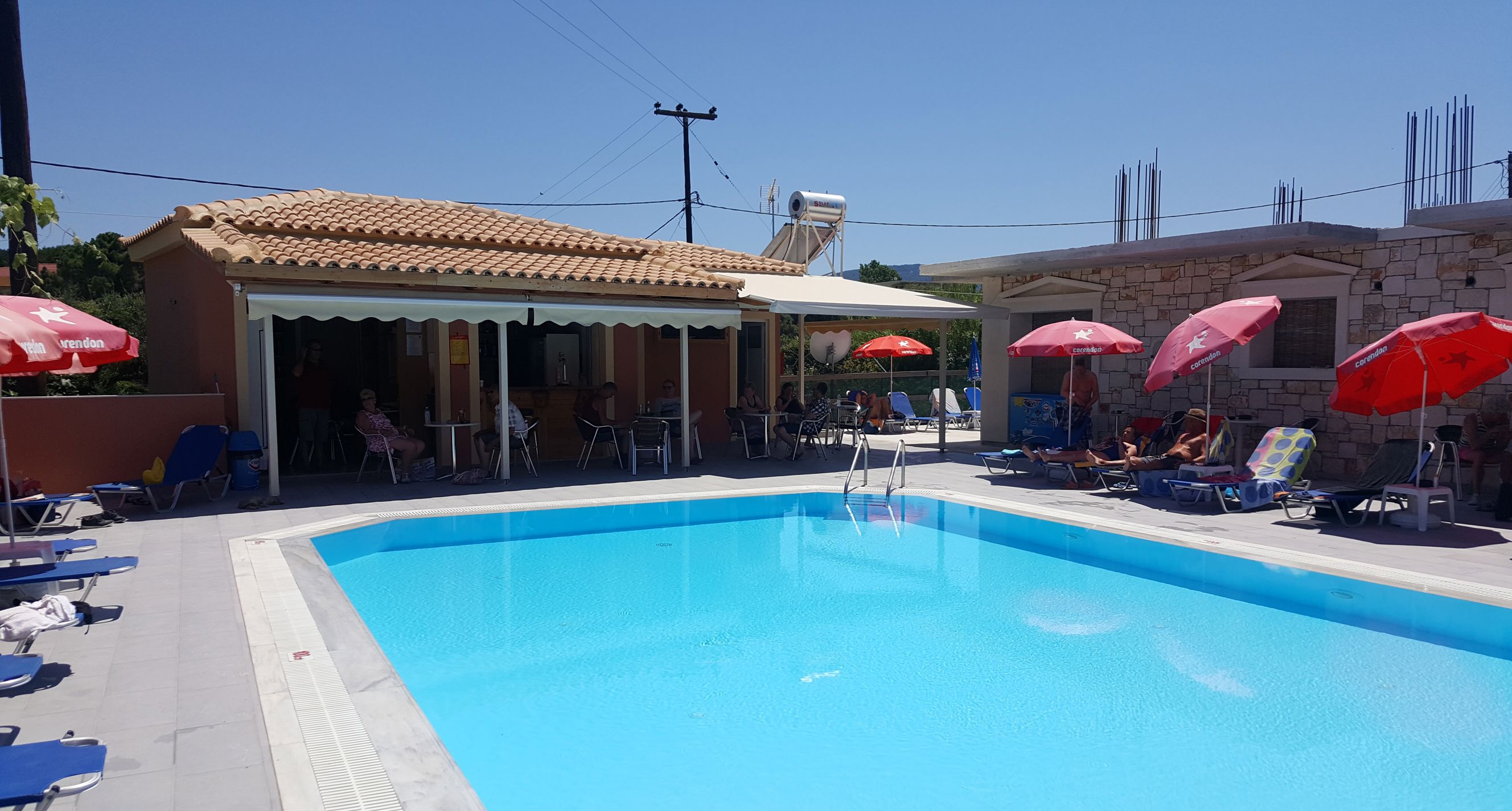 Ligging: Kalimera Koukla in Agios Sostis Kalimera Koukla ligt op ongeveer 150 m van het smalle strand en op ca. 400 m van het gezellige plaatsje Agios Sostis. De bruisende hoofdstad Zakynthos-Stad ligt op ongeveer 12 km afstand. Op zo'n 400-500 meter afstand vind je diverse winkels, bars en restaurants. Let op: de transferbus kan de accommodatie niet bereiken vanwege de smalle toegangsweg. De laatste meters zullen gelopen moeten worden. Daarnaast bestaat het complex uit twee gedeeltes, waarbij het zwembad en het gebouw bij de studio's te vinden zijn. Faciliteiten: Kalimera Koukla Kalimera Koukla telt 21 studio's in één gebouw met 2 verdiepingen. Er is geen receptie, lift en restaurant, wel is er een bagageruimte. In de directe omgeving zijn er voldoende restaurants. In Kalimera Koukla kun je gebruikmaken van een zwembad met een zonneterras met ligbedden en parasols en de pool-/snackbar. Verder kun je in Kalimera Koukla gratis gebruikmaken van wifi. Mocht je een auto huren, kun je gratis parkeren op de openbare parkeerplekken. Dit complex is door de ligging minder geschikt voor mensen die slecht ter been zijn. Studio: De studio (1-5 personen) in Kalimera Koukla is ruim (ca. 32 m²) en netjes ingericht en beschikt over airconditioning (tegen betaling), televisie, kluisje (tegen betaling), telefoon, wifi (gratis), een kitchenette met koelkast, kookplaten en waterkoker. De badkamer is voorzien van een douche en toilet. Alle studio's hebben een balkon met zitje. Verzorging Zomer : Kalimera Koukla Je verblijft in Kalimera Koukla op basis van Logies. Extra informatie: Bij deze pakketreis is een huurauto inbegrepen, daarom vervalt de transfer van de luchthaven naar de accommodatie en vice versa. De reisleiding, aanwezig op de luchthaven, verwijst je naar het autoverhuurbedrijf en geeft je een welkomstenvelop. Is je reisgezelschap te groot voor één auto? Boek dan een tweede auto bij. Voor prijzen en beschikbaarheid kun je contact opnemen met ons Contact Center. Informatie & Voorwaarden Huurauto ()