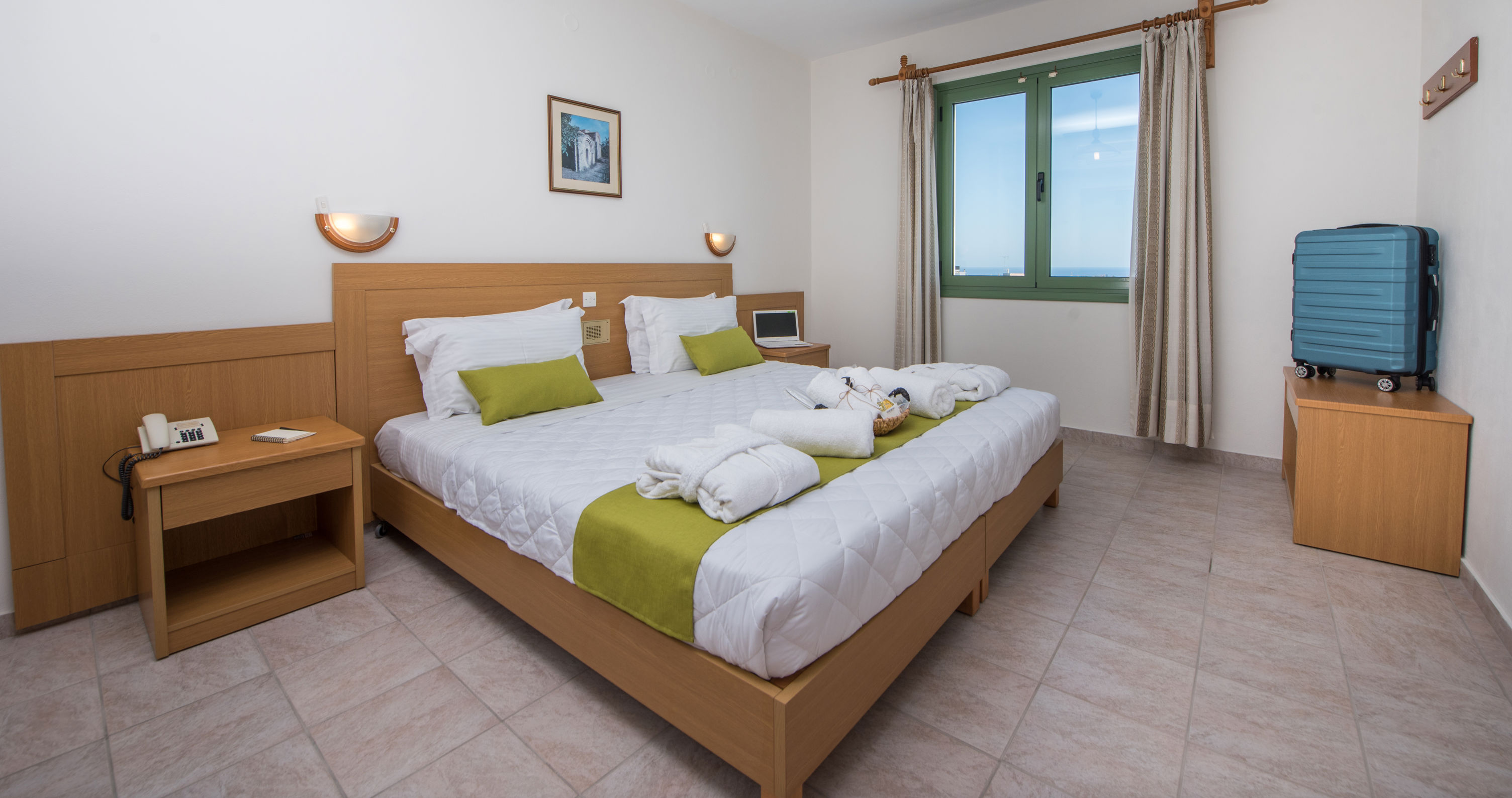 Direct naar: * Ligging () * Faciliteiten () * Restaurants & bars () * Zwembaden () * Hotelkamers () * Activiteiten & ontspanning () * Kinderfaciliteiten () * Verzorging () Ligging: Mitos Village * Gelegen op een heuvel * Chersonissos op ca. 300 meter * Het strand van Chersonissos op ca. 2 kilometer Faciliteiten * 2 gebouwen met maximaal 3 verdiepingen * 29 kamers * 24-uursreceptie * Lobby * Bagageruimte * Tuin * Wifi * Roomservice* * Wasservice* * Doktersservice* * Openbare parkeergelegenheid *Tegen betaling Restaurants & bars * 1 buffetrestaurant * 1 bar Zwembaden * 1 buitenzwembad * Zonneterras * Ligbedden, badhanddoekenservice, matrasjes en parasols gratis (zwembad) Hotelkamers * Standaardkamer Classic Tuinzicht (2-4 personen) * Ca. 48 m² * Telefoon* * Airconditioning * Televisie * Koelkast * Kluisje * Wifi * Douche in bad * Toilet * Föhn * Badjas * Slippers * Balkon of terras met zitje * Tegen een meerprijs boekbaar met zwembadzicht *Tegen betaling * Standaardkamer Traditional (2-4 personen) * Ca. 42 m² * Tuin- of zwembadzicht * Dezelfde faciliteiten als de standaardkamer Activiteiten & ontspanning * Fitness *Tegen betaling Kinderfaciliteiten * Speeltuin Verzorging Zomer: Mitos Village * Verblijf o.b.v. Logies & Ontbijt: ontbijt in buffetvorm Extra informatie: Bij deze pakketreis is een huurauto inbegrepen, daarom vervalt de transfer van de luchthaven naar de accommodatie en vice versa. De reisleiding, aanwezig op de luchthaven, verwijst je naar het autoverhuurbedrijf en geeft je een welkomstenvelop. Is je reisgezelschap te groot voor één auto? Boek dan een tweede auto bij. Voor prijzen en beschikbaarheid kun je contact opnemen met ons Contact Center. Voorwaarden & informatie huurauto ()