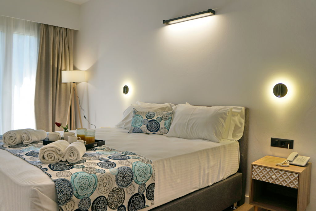 Direct naar: * Ligging () * Faciliteiten () * Restaurants & bars () * Hotelkamers () * Zwembaden () * Activiteiten & ontspanning () * Verzorging () * Ligging Aquamare * Op ca. 100 meter van het kiezel-/rotsstrand Eftalou * Ca. 4,5 kilometer van Molyvos * Bushalte op ca. 300 meter * Restaurant op ca. 500 meter * Winkels en bars op ca. 4,5 kilometer * Hotsprings op circa 600 meter * Kasteel van Molyvos op ca. 4,5 kilometer * Gratis shuttleservice naar Molyvos Centrum Faciliteiten * Only Adult hotel; minimale leeftijd van de gasten is 16 jaar * 1 gebouw met maximaal 3 verdiepingen * 1 lift * 61 kamers * 24-uursreceptie * Lobby * Bagageruimte * Tuin * Wifi in de lobby en bij het zwembad * Wasservice* *Tegen betaling Restaurants & bars * 1 buffetrestaurant * 1 à-la-carterestaurant (vooraf reserveren en tegen betaling) * 3 bars Hotelkamers * 2-persoonskamer kamer zwembadzicht (1-3 personen) * Ca. 18 m² * Telefoon* * Airconditioning * Televisie * Koelkastje * Kluisje * Koffie-/theezetfaciliteiten* * Wifi * Douche * Toilet * Föhn * Balkon of terras met zitje * Tegen een meerprijs boekbaar met zeezicht (1-2 personen) * De voordeelkamer (1-2 personen) kan qua grootte, ligging, uitzicht en faciliteiten afwijken van de standaardkamer *Tegen betaling * Junior suite Standaard (2-4 personen) * Ca. 26 m² * Bestaat uit 1 ruimte * Dezelfde faciliteiten als de standaardkamer * Suite Deluxe (2-4 personen) * Ruimer dan de standaardkamer * Bestaat uit 1 ruimte * Dezelfde faciliteiten als de standaardkamer Zwembaden * 1 buitenzwembad * Zonneterras * Ligbedden en parasols gratis (zwembad) * Ligbedden en parasols tegen betaling (strand) * Badhanddoekenservice (tegen betaling) Activiteiten & ontspanning * Fitness * Aerobics * Yoga* * Boccia * Darts * Tafelvoetbal* * Biljart * Tafeltennis * Tennis * Massages en behandelingen* * 2x per week entertainment *Tegen betaling Verzorging Zomer: Aquamare * Verblijf o.b.v. All Inclusive: * Ontbijt in buffetvorm (07.00-10.00 uur) * Lunch in buffetvorm (13.00-15.00 uur) * Diner in buffetvorm (19.00-21.30 uur) * Diverse snacks (11.30-12.30 en 16.00-17.00 uur) * Koffie/thee en koekjes (11.30-12.30 uur) * IJs (16.00-18.00 uur) * Nachtsnack (22.00-23.00 uur) * Geselecteerde lokale (non-)alcoholische dranken (10.00-23.00 uur) * Tegen betaling: import drankjes, de Beach Bar, roomservice en het à-la-carterestaurant (vooraf reserveren) Extra informatie: Bij deze pakketreis is een huurauto inbegrepen, daarom vervalt de transfer van de luchthaven naar de accommodatie en vice versa. De reisleiding, aanwezig op de luchthaven, verwijst je naar het autoverhuurbedrijf en geeft je een welkomstenvelop. Is je reisgezelschap te groot voor één auto? Boek dan een tweede auto bij. Voor prijzen en beschikbaarheid kun je contact opnemen met ons Contact Center. Informatie & Voorwaarden Huurauto ()