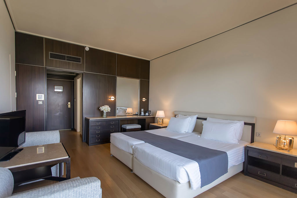 Direct naar: * Ligging () * Faciliteiten () * Restaurants & bars () * Zwembaden () * Hotelkamers () * Activiteiten & ontspanning () * Kinderfaciliteiten () * Verzorging () Ligging Corfu Holiday Palace * Gelegen op een heuvel * Gelegen in Kanoni * Direct aan het privéstrand, te bereiken met een lift * Winkels op circa 1 kilometer * Mouse Island op circa 400 meter * Centrum van Corfu-Stad op circa 4 kilometer * Mon Repos Palace op circa 1,6 kilometer * Bushalte op circa 10 meter * Let op: deze accommodatie is niet geschikt voor mensen die slecht ter been zijn Faciliteiten * 4 gebouwen met maximaal 6 verdiepingen * Niet in elk gebouw is een lift aanwezig * 265 kamers * 24-uursreceptie * Lobby * Bagageruimte * Tuin * Wifi * Roomservice* * Minimarkt* * Wasservice* * Doktersservice* * Privé parkeergelegenheid *Tegen betaling Restaurants & bars * 1 buffetrestaurant * 4 à-la-carterestaurants (vooraf reserveren en tegen betaling) * 3 bars Zwembaden * 1 zoutwater buitenzwembad * Zonneterras * Privéstrand * Ligbedden, badhanddoekenservice en parasols gratis (zwembad en strand) Hotelkamers * Standaardkamer meerzicht (1-3 personen) * Ca. 26 m² * Telefoon* * Airconditioning * Televisie * Koelkastje * Kluisje * Koffie-/theezetfaciliteiten * Wifi * Bad/douche * Toilet * Föhn * Slippers * Balkon of terras met zitje * Tegen een meerprijs boekbaar met zeezicht *Tegen betaling * Superiorkamer meerzicht (1-3 personen) * Ca. 26 m² * Gelegen op één van de hogere verdiepingen * Dezelfde faciliteiten als de Standaardkamer meerzicht * Tegen een meerprijs boekbaar met zeezicht * Superiorbungalow zeezicht (2-4 personen) * Ca. 40 m² * Dezelfde faciliteiten als de Standaardkamer * Tegen een meerprijs boekbaar met direct toegang tot een gezamenlijk zwembad Activiteiten & ontspanning * Fitness * Biljart* * Tafeltennis * Tennis * Massages en behandelingen* * Dagelijks livemuziek *Tegen betaling Kinderfaciliteiten * Speeltuin * Babybedjes (op aanvraag en op basis van beschikbaarheid) * Babysitservice op aanvraag en tegen betaling Verzorging Zomer: Corfu Holiday Palace * Verblijf o.b.v. Halfpension: Ontbijt in buffetvorm en diner in buffetvorm Extra informatie: Bij deze pakketreis is een huurauto inbegrepen, daarom vervalt de transfer van de luchthaven naar de accommodatie en vice versa. De reisleiding, aanwezig op de luchthaven, verwijst je naar het autoverhuurbedrijf en geeft je een welkomstenvelop. Is je reisgezelschap te groot voor één auto? Boek dan een tweede auto bij. Voor prijzen en beschikbaarheid kun je contact opnemen met ons Contact Center. Voorwaarden & informatie huurauto ()