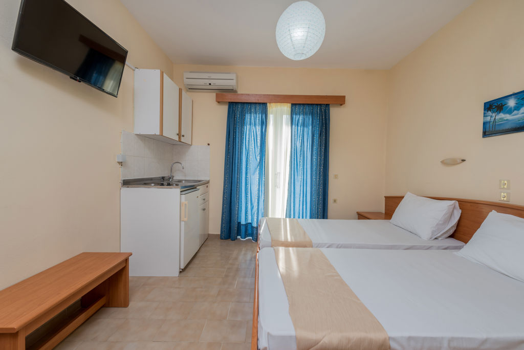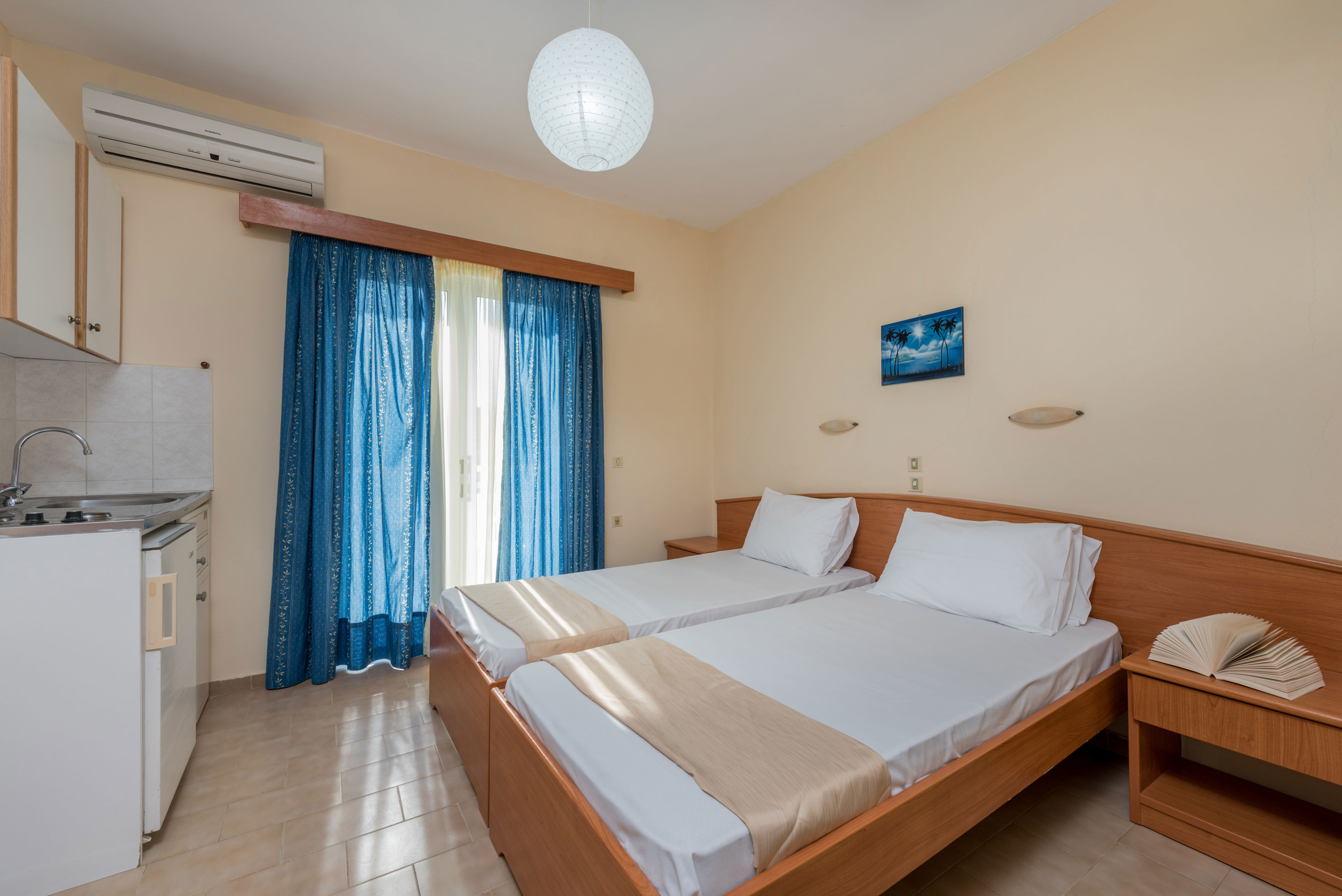 Zomer Wanneer je tussen 01-06-2026 en 30-09-2026 in deze accommodatie verblijft, is onderstaande informatie van toepassing. * Ligging * Openbaar strand op circa 300 meter * Zandstrand * Centrum van Laganas op circa 100 meter * Dichtstbijzijnde winkel op circa 90 meter * Dichtstbijzijnde restaurant * Beschikbaar bij 70 * Dichtstbijzijnde bar op circa 110 meter * Turtle Beach op circa 280 meter * Bushalte op circa 100 meter * Algemeen & faciliteiten * 1 gebouw * Maximaal 2 verdiepingen * 15 studio's * Geen receptie aanwezig * Lobby * Geen liften * Wifi in diverse openbare ruimtes * Tuin * Privé parkeergelegenheid * Restaurants & bars * Drinkgelegenheid * Pool-/snackbar * Zwembaden * Buitenzwembad * Buitenzwembad voor kinderen * Zonneterras * Ligbedden * Parasol * Verzorging * LogiesHotelkamers * Studio Standaard SZ * Oppervlakte circa 28 m² * Tuinzicht * Airconditioning tegen betaling * Kluisje tegen betaling * Televisie * Kitchenette * 2-pits kooktoestel * Koffie- en theefaciliteiten * Koelkast * Badkamer douche, toilet en föhn * Wifi * Balkon of terras (zitje)