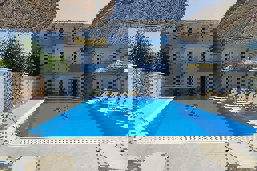 * Winter Wanneer je tussen 15-04-2025 en 31-10-2026 in deze accommodatie verblijft, is onderstaande informatie van toepassing. * Ligging * Openbaar strand op circa 30 meter * Kiezelstrand * Centrum van Nidri op circa 400 meter * Centrum van Lefkas - stad op circa 17 kilometer * Dichtstbijzijnde restaurant op circa 80 meter * Dichtstbijzijnde bar op circa 200 meter * Dimosari watervallen op circa 6,6 kilometer * Bushalte op circa 10 meter * Algemeen & faciliteiten * 1 gebouw * Maximaal 3 verdiepingen * 17 kamers * Receptie * Open van 08.00 tot 22.00 uur * Geen liften * Bagageruimte * Wifi in één van de openbare ruimtes * Tuin * Privé parkeergelegenheid * Restaurants & bars * Drinkgelegenheid * Poolbar * Activiteiten & ontspanning * Shows * Eén keer per week * Zwembaden * Buitenzwembad * Zoetwater * Zonneterras * Ligbedden * Parasol * Kinderfaciliteiten * Buitenspeeltuin * Babybedje op aanvraag via ons contact center * Verzorging * LogiesHotelkamers * Studio Standaard Zwembadzicht SZ1 * Oppervlakte circa 20 m² * Zwembadzicht * Airconditioning tegen betaling * Kluisje * Televisie * Kitchenette * 2-pits kooktoestel * Koffie- en theefaciliteiten * Waterkoker * Koelkast * Badkamer met douche, toilet en föhn (op aanvraag) * Balkon (zitje) * Studio Standaard Zwembadzicht SZ3 * Oppervlakte circa 21 m² * Op de begane grond * Zwembadzicht * Airconditioning tegen betaling * Kluisje * Televisie * Kitchenette * 2-pits kooktoestel * Koffie- en theefaciliteiten * Waterkoker * Koelkast * Badkamer met douche, toilet en föhn (op aanvraag) * Terras (zitje) * Studio Standaard Zwembadzicht (Ground floor) SZ2 * Oppervlakte circa 20 m² * Op de begane grond * Zwembadzicht * Airconditioning tegen betaling * Kluisje * Televisie * Kitchenette * 2-pits kooktoestel * Koffie- en theefaciliteiten * Waterkoker * Koelkast * Badkamer met douche, toilet en föhn (op aanvraag) * Terras (zitje) * Winter Wanneer je tussen 15-04-2026 en 31-10-2028 in deze accommodatie verblijft, is onderstaande informatie van toepassing. * Ligging * Openbaar strand op circa 30 meter * Kiezelstrand * Centrum van Nidri op circa 400 meter * Centrum van Lefkas - stad op circa 17 kilometer * Dichtstbijzijnde restaurant op circa 80 meter * Dichtstbijzijnde bar op circa 200 meter * Dimosari watervallen op circa 6,6 kilometer * Bushalte op circa 10 meter * Algemeen & faciliteiten * 1 gebouw * Maximaal 3 verdiepingen * 17 kamers * Receptie * Open van 08.00 tot 22.00 uur * Geen liften * Bagageruimte * Wifi in één van de openbare ruimtes * Tuin * Privé parkeergelegenheid * Restaurants & bars * Drinkgelegenheid * Poolbar * Activiteiten & ontspanning * Shows * Eén keer per week * Zwembaden * Buitenzwembad * Zoetwater * Zonneterras * Ligbedden * Parasol * Kinderfaciliteiten * Buitenspeeltuin * Babybedje als preferentie toe te voegen in het boekingsformulier * Verzorging * LogiesHotelkamers * Studio Standaard Zwembadzicht SZ1 * Oppervlakte circa 20 m² * Zwembadzicht * Airconditioning * Kluisje * Televisie * Kitchenette * 2-pits kooktoestel * Koffie- en theefaciliteiten * Waterkoker * Koelkast * Badkamer douche, toilet en föhn (op aanvraag) * Balkon (zitje) * Studio Standaard Zwembadzicht SZ3 * Oppervlakte circa 21 m² * Op de begane grond * Zwembadzicht * Airconditioning * Kluisje * Televisie * Kitchenette * 2-pits kooktoestel * Koffie- en theefaciliteiten * Waterkoker * Koelkast * Badkamer douche, toilet en föhn (op aanvraag) * Terras (zitje) * Studio Standaard Zwembadzicht (Ground floor) SZ2 * Oppervlakte circa 20 m² * Op de begane grond * Zwembadzicht * Airconditioning * Kluisje * Televisie * Kitchenette * 2-pits kooktoestel * Koffie- en theefaciliteiten * Waterkoker * Koelkast * Badkamer douche, toilet en föhn (op aanvraag) * Terras (zitje)
