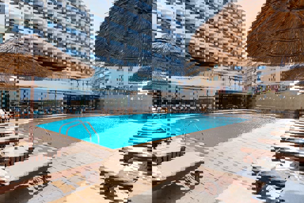 Ligging: Blue Sky City Beach ligt op ongeveer 100 meter van het Psaropoula strand (gescheiden door een weg). Het oude en historische centrum van Rhodos-Stad, met vele winkeltjes, restaurants en musea, ligt op ongeveer 10 minuten loopafstand. Faciliteiten: Blue Sky City Beach telt 182 kamers verdeeld over één gebouw. Je vindt er een ruime lobby met zitjes, een receptie en liften. Er is een heerlijk buitenzwembad met apart kinderbad. Rondom het zwembad staan de ligbedden en parasols voor je klaar. Op het strand zijn de ligbedden en parasols tegen betaling. Voor je maaltijden kun je terecht in het buffetrestaurant. Voor een drankje of een snack kunt terecht bij de pool-/snackbar en de lobbybar. Verder biedt Blue Sky City Beach je een minimarkt, een winkeltje, roomservice, wasservice en wifi (alle tegen betaling). Hotelkamer: De standaardkamers (1-3 personen) van Blue Sky City Beach zijn comfortabel ingericht en beschikken over airconditioning (van 15/05 t/m 30/09), satelliettelevisie, minibar (tegen betaling), huurkluisje, telefoon en een balkon of terras met zitje. Een badkamer met bad of douche, toilet en föhn. Tegen een meerprijs kun je een deluxe kamer (1-2 personen) boeken of een deluxe kamer met zeezicht (1-2 personen). De deluxe kamers zijn comfortabel ingericht en beschikken over airconditioning (van 15/05 t/m 30/09), flatscreen met satelliettelevisie, minibar (tegen betaling), huurkluisje, telefoon en een balkon of terras met zitje. Een badkamer met bad of douche, toilet en föhn. Sport & Ontspanning: Tegen betaling kun je in Blue Sky City Beach gebruikmaken van het fitness centrum, de sauna, stoombad, bubbelbad en massages. Verzorging: Je verblijft in Blue Sky City Beach op basis van logies en ontbijt (ontbijt in buffetvorm), tegen meerprijs Halfpension bij te boeken (ontbijt en diner in buffetvorm). LET OP: In het voor/naseizoen en eventueel tijdens de winter periode (1 november t/m +/- 31 maart) kan het voorkomen dat bepaalde faciliteiten niet beschikbaar zijn i.v.m. onderhoud, bezetting of weersomstandigheden. Zo zijn veelal de buitenfaciliteiten niet beschikbaar, de buitenzwembaden buiten gebruik en geen of beperkte animatie aanwezig. Ook kan het voorkomen dat een accommodatieverschaffer vergoeding kan vragen voor bepaalde faciliteiten of diensten en dat de verzorging iets beperkter kan zijn. Het kan voorkomen dat een deel van het accommodatie complex tijdelijk niet in gebruik is vanwege onderhoud of lage bezetting.