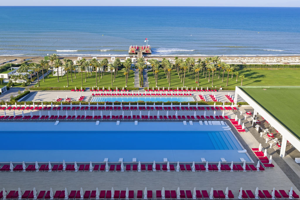 Zomer Wanneer je tussen 01-04-2026 en 31-10-2026 in deze accommodatie verblijft, is onderstaande informatie van toepassing. * Ligging * Gelegen aan het privéstrand * Zandstrand * Kiezelstrand * Ligbedden met matrasjes * Parasol * Cabana's tegen betaling * Centrum van Belek op circa 1,5 kilometer * Dichtstbijzijnde winkel op circa 1,5 kilometer * Dichtstbijzijnde restaurant op circa 1,5 kilometer * Dichtstbijzijnde bar op circa 1,5 kilometer * Bushalte op circa 1,5 kilometer * Taxistandplaats op circa 20 meter * Algemeen & faciliteiten * Adults Only (minimumleeftijd 16 jaar) * Trendy accommodatie * 69 gebouwen * Maximaal 6 verdiepingen * 476 kamers * Receptie * 24 uur per dag * Lobby * 10 liften * Niet in elk gebouw een lift * Bagageruimte * Doucheruimte bij aankomst en vertrek * Wifi in alle openbare ruimtes * Meerdere winkels * Minimarkt * Wasservice tegen betaling * Doktersservice tegen betaling * op aanvraag * Tuin * Privé parkeergelegenheid * Restaurants & bars * 2 buffetrestaurants * 7 à-la-carterestaurants (vooraf reserveren) tegen bijbetaling * Italiaans restaurant * Japans restaurant * Restaurant met verschillende specialiteiten * Steakhouse * Turks restaurant * Visrestaurant * Roomservice tegen betaling * 6 drinkgelegenheden * 4 bars * Beachbar * Discobar * Activiteiten & ontspanning * Basketbal * Beachvolleybal * Biljart tegen betaling * Bowling tegen betaling * Duikcentrum tegen betaling * Fitness * Squash * Tafeltennis * Tafelvoetbal tegen betaling * Tennis * Voetbal * Watersporten tegen betaling * Yoga gratis * Spa Center * Binnenzwembad * Sauna * Hamam behandelingen tegen betaling * Bubbelbad binnen tegen betaling * Massages tegen betaling * Schoonheidsbehandelingen tegen betaling * Gameroom * Animatie voor volwassenen * 7 keer per week * Shows * 7 keer per week * Livemuziek * 3 keer per week * Zwembaden * 4 buitenzwembaden * Eén van deze zwembaden heeft meerdere glijbanen * De glijbanen hebben verschillende openingsperiodes * Eén van deze zwembaden is exclusief * Zonneterras * Ligbedden met matrasjes * Parasol * Cabana's tegen betaling * Badhanddoekenservice * Verzorging * Ultra All Inclusive * Ontbijt in buffetvorm (07.00-10.00 uur) * Laat ontbijt in buffetvorm (10.00-11.00 uur) * Lunch in buffetvorm (13.00-14.30 uur) * Diner in buffetvorm (19.00-21.30 uur) * Snacks (11.30-16.00 uur) * Koffie, thee & koekjes (16.00-19.00 uur) * IJs (11.30-16.00 uur) * Middernachtsnack (23.30-02.30 uur) * Selectie lokale (non-)alcoholische drankjes (24 uur per dag) * Tegen betaling: dineren in alle à-la-carterestaurants, import drankjes, champagne, verse vruchtensappen en roomserviceHotelkamers * 2-persoonskamer Standaard DZ * Oppervlakte circa 64 m² * Airconditioning * Kluisje * Televisie * Telefoon tegen betaling * Eet- en drinkfaciliteiten * Koffie- en theefaciliteiten * Minibar gedeeltelijk gratis * Badkamer inloopdouche, bad, toilet, föhn, badjassen en badslippers * Wifi * Balkon of terras (zitje) * 2-persoonskamer Standaard Zeezicht (Design) DZM * Oppervlakte circa 64 m² * Zeezicht * Airconditioning * Kluisje * Televisie * Telefoon tegen betaling * Eet- en drinkfaciliteiten * Koffie- en theefaciliteiten * Minibar gedeeltelijk gratis * Badkamer inloopdouche, bad, toilet, föhn, badjassen en badslippers * Wifi * Balkon of terras (zitje) * 2-persoonskamer Suite Landzicht (Design) DUL * Oppervlakte van circa 120 m² * Landzicht * Airconditioning * Kluisje * Televisie * Telefoon tegen betaling * Eet- en drinkfaciliteiten * Koffie- en theefaciliteiten * Minibar gedeeltelijk gratis bij aankomst * 2 badkamers * 2 badkamers met douche, toilet, föhn, badjassen en badslippers * Wifi * Balkon of terras (zitje) * 2-persoonskamer Suite Zeezicht (Design) DUM * Oppervlakte van circa 120 m² * Zeezicht * Airconditioning * Kluisje * Televisie * Telefoon tegen betaling * Eet- en drinkfaciliteiten * Koffie- en theefaciliteiten * Minibar gedeeltelijk gratis bij aankomst * 2 badkamers * 2 badkamers met douche, toilet, föhn, badjassen en badslippers * Wifi * Balkon of terras (zitje) * Familiekamer Duplex Swimup (Adam & Eve) FFZ * Oppervlakte van circa 175 m² * In duplexstijl * Woon-/slaapkamer * Slaapbank voor twee personen * Eén slaapkamer * Airconditioning * Kluisje * Televisie * Telefoon tegen betaling * Eet- en drinkfaciliteiten * Koffie- en theefaciliteiten * Minibar gedeeltelijk gratis bij aankomst * 2 badkamers * 2 badkamers met douche, toilet, föhn, badjassen en badslippers * Wifi * Terras * Directe toegang tot het gedeelde zwembad * 2-kamervilla (Adam) 2V1 * Oppervlakte circa 175 m² * Woon-/slaapkamer * Slaapbank voor één persoon * Eén slaapkamer * Airconditioning * Kluisje * Televisie * Telefoon tegen betaling * Eet- en drinkfaciliteiten * Koffie- en theefaciliteiten * Minibar gedeeltelijk gratis bij aankomst * 2 badkamers * Eén badkamer met inloopdouche, toilet en föhn * Eén badkamer met toilet, föhn, badjassen en badslippers * Privésauna * Wifi * Terras (zitje) * Directe toegang tot het gedeelde zwembad * 3-kamervilla (Eve) 3V1 * Oppervlakte circa 200 m² * Woonkamer * 2 slaapkamers * Airconditioning * Kluisje * Televisie * Telefoon tegen betaling * Eet- en drinkfaciliteiten * Koffie- en theefaciliteiten * Minibar gedeeltelijk gratis bij aankomst * 2 badkamers * Eén badkamer met inloopdouche, toilet en föhn * Eén badkamer met bubbelbad, toilet, föhn, badjassen en badslippers * Privésauna * Wifi * Terras (zitje) * Directe toegang tot het gedeelde zwembad