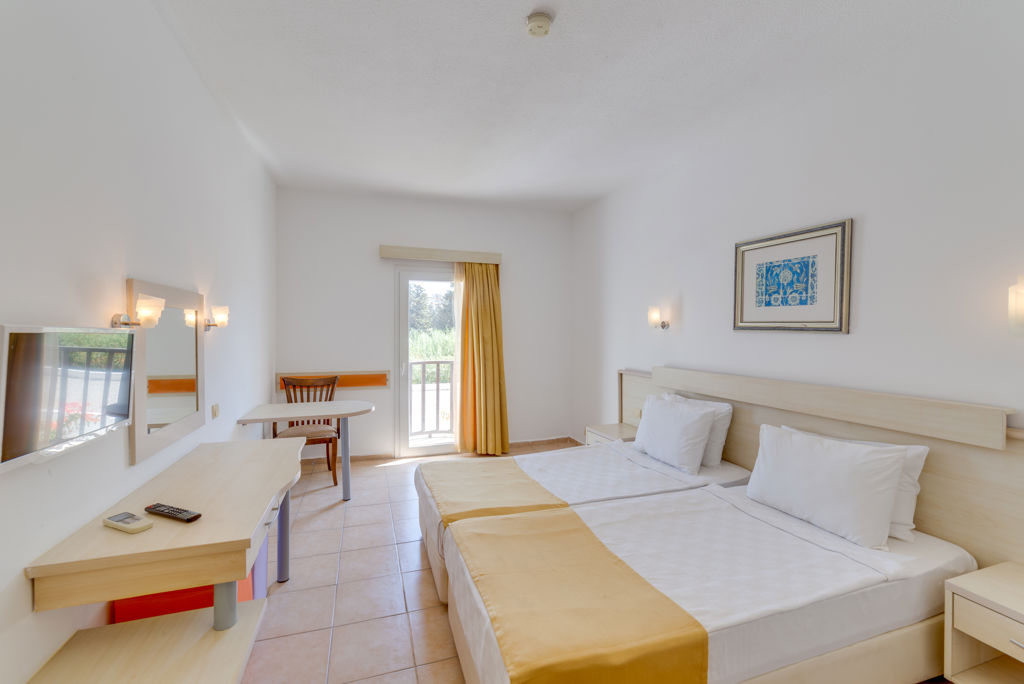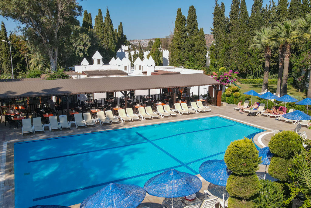 Zomer Wanneer je tussen 10-05-2026 en 05-10-2026 in deze accommodatie verblijft, is onderstaande informatie van toepassing. * Ligging * Openbaar strand op circa 100 meter * Zandstrand * Centrum van Bodrum op circa 7 kilometer * Dichtstbijzijnde restaurant op circa 500 meter * Antique Theater op circa 6 kilometer * Mausoleum op circa 5 kilometer * Myndos Gate op circa 4 kilometer * Algemeen & faciliteiten * 2 gebouwen * Maximaal 2 verdiepingen * 90 kamers * Receptie * 24 uur per dag * Lobby * Geen liften * Bagageruimte * Wifi in alle openbare ruimtes * Wasservice tegen betaling * Doktersservice tegen betaling * op aanvraag * Tuin * Openbare parkeergelegenheid * Privé parkeergelegenheid * Restaurants & bars * Buffetrestaurant * 2 drinkgelegenheden * 2 bars * Activiteiten & ontspanning * Basketbal * Biljart tegen betaling * Darts * Tafeltennis * Tennis tegen betaling * Voetbal * Volleybal * Spafaciliteiten * Sauna tegen betaling * Massages tegen betaling * Zwembaden * Buitenzwembad * Buitenzwembad voor kinderen * Zonneterras * Ligbedden * Parasol * Kinderfaciliteiten * Buitenspeeltuin * Babybedje als preferentie toe te voegen in het boekingsformulier * Verzorging * All Inclusive * Ontbijt in buffetvorm (08.00-10.00 uur) * Lunch in buffetvorm (12.30-14.00 uur) * Diner in buffetvorm (19.00-21.00 uur) * Snacks (15.00-17.00 uur) * Koffie, thee & koekjes (17.00-18.00 uur) * Selectie lokale (non-)alcoholische drankjes (11.00-23.00 uur) * Tegen betaling: IJs, drankjes in flessen, import drankjes, cocktails en turkse koffieHotelkamers * 2-persoonskamer Voordeel DE * 2-persoonskamer Standaard DZ * Oppervlakte van circa 18 m² * Airconditioning * Kluisje * Televisie * Telefoon tegen betaling * Eet- en drinkfaciliteiten * Mini koelkast * Badkamer douche, toilet en föhn * Wifi * Balkon of terras (zitje)