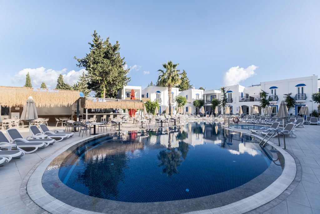 Zomer Wanneer je tussen 18-04-2026 en 31-10-2026 in deze accommodatie verblijft, is onderstaande informatie van toepassing. * Ligging * Openbaar strand op circa 200 meter * Centrum van Bitez op circa 500 meter * Dichtstbijzijnde winkel op circa 250 meter * Dichtstbijzijnde restaurant op circa 250 meter * Dichtstbijzijnde bar op circa 250 meter * Bodrum op circa 6 kilometer * Bushalte (op loopafstand) * Algemeen & faciliteiten * 12 gebouwen * Maximaal 2 verdiepingen * 104 kamers * Receptie * 24 uur per dag * Lobby * Geen liften * Bagageruimte * Wifi in alle openbare ruimtes * Tuin * Openbare parkeergelegenheid * Restaurants & bars * Buffetrestaurant * À-la-carterestaurant tegen bijbetaling * 2 drinkgelegenheden * 2 bars * Activiteiten & ontspanning * Darts * Tafeltennis * Zwembaden * 2 buitenzwembaden * Eén van deze zwembaden heeft een glijbaan * 2 buitenzwembaden voor kinderen * Eén van deze zwembaden heeft een glijbaan * Zonneterras * Ligbedden met matrasjes * Parasol * Badhanddoekenservice * Kinderfaciliteiten * Buitenspeeltuin * Babybedje * Babysitservice tegen betaling * Verzorging * All Inclusive * Ontbijt in buffetvorm (08.00-10.00 uur) * Laat ontbijt in buffetvorm (10.00-10.30 uur) * Lunch in buffetvorm (12.30-14.00 uur) * Diner in buffetvorm (19.30-21.30 uur) * Snacks (14.30-17.00 uur) * Koffie, thee & koekjes (17.00-18.00 uur) * IJs (15.00-16.30 uur) * Middernachtsnack (23.30-00.30 uur) * Selectie lokale (non-)alcoholische drankjes (10.00-00.00 uur) * Tegen betaling: import drankjesHotelkamers * 2-persoonskamer Standaard DZ * Oppervlakte circa 24 m² * Op de begane grond * Airconditioning * Televisie * Telefoon tegen betaling * Eet- en drinkfaciliteiten * Mini koelkast * Badkamer douche, toilet en föhn * Balkon of terras (zitje) * Familiekamer Standaard FZ * Oppervlakte circa 36 m² * Op de eerste verdieping * Woon-/slaapkamer * Eén slaapkamer * Airconditioning * Televisie * Telefoon tegen betaling * Eet- en drinkfaciliteiten * Mini koelkast * Badkamer douche, toilet en föhn * Balkon of terras (zitje)
