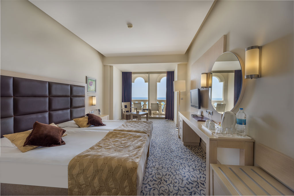Zomer Wanneer je tussen 01-04-2026 en 31-10-2026 in deze accommodatie verblijft, is onderstaande informatie van toepassing. * Ligging * Gelegen aan het privéstrand * Zandstrand * Apart gedeelte voor volwassenen * Ligbedden met matrasjes * Parasol * Centrum van Side op circa 5 kilometer * Centrum van Manavgat op circa 12 kilometer * Dichtstbijzijnde winkel op circa 500 meter * Dichtstbijzijnde restaurant op circa 500 meter * Dichtstbijzijnde bar op circa 500 meter * Bushalte op circa 500 meter * Algemeen & faciliteiten * 1 gebouw * Maximaal 7 verdiepingen * 244 kamers * Receptie * 24 uur per dag * Lobby * 3 liften * Lift in elk gebouw * Bagageruimte * Wifi in alle openbare ruimtes * Meerdere winkels * Minimarkt * Wasservice tegen betaling * Doktersservice tegen betaling * Tuin * Openbare parkeergelegenheid * Privé parkeergelegenheid * Restaurants & bars * Buffetrestaurant * 7 à-la-carterestaurants * Chinees restaurant (vooraf reserveren) * Frans restaurant (vooraf reserveren) * Italiaans restaurant (vooraf reserveren) * Mexicaans restaurant (vooraf reserveren) * Restaurant met verschillende specialiteiten tegen bijbetaling * Turks restaurant * Visrestaurant (vooraf reserveren) * 17 drinkgelegenheden * 2 bars * 2 beachbars * Cocktailbar * 2 discobars * 3 koffiecorners * 2 lobbybars * Lounge bar * Terrace bar * Activiteiten & ontspanning * Aerobics * Aquagym * Basketbal gratis * Beachvolleybal * Biljart tegen betaling * Boccia * Bowling tegen betaling * Darts * Fitness * Kangoo jumping * Midgetgolf * Ochtendgymnastiek * Tafeltennis * Tennis * Voetbal * Watersporten tegen betaling * Yoga * Spa Center * Binnenzwembad * Sauna * Hamam * Bubbelbad binnen tegen betaling * Massages tegen betaling * Schoonheidsbehandelingen tegen betaling * Karaoke- * Discotheek * Gameroom * Animatie * Shows * Livemuziek * Zwembaden * 4 buitenzwembaden * Eén van deze zwembaden heeft 6 glijbanen * 3 buitenzwembaden voor kinderen * Aquapark * Open tussen ca. april en oktober * 14 glijbanen * Zonneterras * Ligbedden met matrasjes * Parasol * Badhanddoekenservice * Kinderfaciliteiten * Mini club (4-12 jaar) * 7 keer per week * Teenage club (13-17 jaar) * Open tussen ca. juni en augustus * Minidisco * Buitenspeeltuin * Babybedje gratis * Verzorging * Ultra All Inclusive * Ontbijt in buffetvorm (07.00-10.00 uur) * Laat ontbijt in buffetvorm (10.00-10.30 uur) * Lunch in buffetvorm (12.30-14.30 uur) * Diner in buffetvorm (19.00-21.30 uur) * Dineren in één van de à-la-carterestaurants 1 keer per verblijf bij een verblijf van minimaal 7 dagen * Snacks (12.00-15.30 uur) * Koffie, thee & koekjes (10.30-18.00 uur) * IJs (10.30-18.00 uur en 19.00-21.30 uur) * Middernachtsnack (00.00-02.30 uur) * Selectie geïmporteerde alcoholische drankjes (24 uur per dag) * Selectie lokale (non-)alcoholische drankjes (24 uur per dag) * Tegen betaling: dineren in alle à-la-carterestaurants, drankjes in flessen, import drankjes en roomservice * Goed om te weten * Duurzaamheidslabel(s): TravelifeHotelkamers * 2-persoonskamer Superior Tuinzicht DSG * Oppervlakte circa 28 m² * Tuinzicht * Airconditioning gratis * Kluisje * Satelliettelevisie * Telefoon tegen betaling * Eet- en drinkfaciliteiten * Koffie- en theefaciliteiten * Minibar gratis * Badkamer douche, toilet, föhn, badjassen en badslippers * Wifi * Balkon of terras (zitje) * 2-persoonskamer Superior Zeezijde DST * Oppervlakte van circa 28 m² * Zeezijde * Airconditioning * Kluisje * Televisie * Telefoon tegen betaling * Eet- en drinkfaciliteiten * Koffie- en theefaciliteiten * Minibar * Badkamer douche, toilet, föhn, badjassen en badslippers * Wifi * Balkon of terras (zitje) * Familiekamer Standaard Tuinzicht FZG * Oppervlakte van circa 56 m² * Tuinzicht * Airconditioning * Kluisje * Televisie * Telefoon tegen betaling * Eet- en drinkfaciliteiten * Koffie- en theefaciliteiten * Minibar * Badkamer douche, toilet, föhn, badjassen en badslippers * Wifi * Balkon of terras (zitje) * Familiekamer Standaard Zeezicht FZM * Oppervlakte van circa 56 m² * Zijzeezicht * Airconditioning * Kluisje * Televisie * Telefoon tegen betaling * Eet- en drinkfaciliteiten * Koffie- en theefaciliteiten * Minibar * Badkamer douche, toilet, föhn, badjassen en badslippers * Wifi * Balkon of terras (zitje)