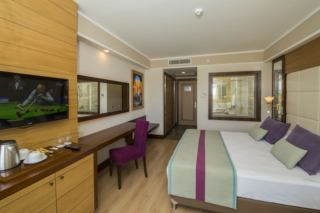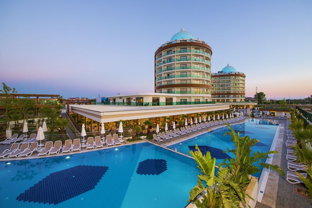 Zomer Wanneer je tussen 27-03-2026 en 21-11-2026 in deze accommodatie verblijft, is onderstaande informatie van toepassing. * Ligging * In Evrenseki * Oude centrum Side op circa 8 kilometer * Privéstrand op circa 600 meter * Weg tussen het strand en de accommodatie * Ligbedden met matrasjes * Parasol * Dichtstbijzijnde winkel op circa 50 meter * Dichtstbijzijnde restaurant op circa 50 meter * Dichtstbijzijnde bar op circa 50 meter * Shuttleservice naar het strand * Algemeen & faciliteiten * 2 gebouwen * Maximaal 7 verdiepingen * 427 kamers * Receptie * 24 uur per dag * Lobby met zitgedeelte * 5 liften * Lift in elk gebouw * Televisieruimte * Wifi bij de receptie * Meerdere winkels * Wasservice tegen betaling * Doktersservice tegen betaling * Tuin * Openbare parkeergelegenheid * Privé parkeergelegenheid * Restaurants & bars * Buffetrestaurant * 3 à-la-carterestaurants (vooraf reserveren) * Roomservice tegen betaling * 6 drinkgelegenheden * 6 bars * Activiteiten & ontspanning * Aerobics * Beachvolleybal * Boccia * Boogschieten * Darts * Duikcentrum tegen betaling * Fitness * Tafeltennis * Voetbal * Watersporten tegen betaling * Spa Center * Binnenzwembad * Sauna * Turks stoombad * Massages tegen betaling * Schoonheidsbehandelingen tegen betaling * Animatie * 6 keer per week * Zwembaden * Meerdere buitenzwembaden * Activiteitenbad * Relaxbad * Bij één van deze zwembaden geldt een minimumleeftijd van 18 jaar * Buitenzwembad voor kinderen * Aquapark * Open tussen ca. dinsdag 7 april 2026 en woensdag 7 oktober 2026 afhankelijk van weersomstandigheden * Zonneterras * Ligbedden met matrasjes * Parasol * Badhanddoekenservice * Kinderfaciliteiten * Mini club (4-12 jaar) * 6 keer per week * Minidisco * Buitenspeeltuin * Babybedje * Verzorging * All Inclusive * Ontbijt in buffetvorm (07.00-10.00 uur) * Laat ontbijt in buffetvorm (10.00-10.30 uur) * Lunch in buffetvorm (12.30-14.00 uur) * Diner in buffetvorm (19.00-21.00 uur) * Dineren in één van de à-la-carterestaurants 1 keer per verblijf * Snacks (12.00-16.00 uur) * Koffie, thee & koekjes (15.00-16.00 uur) * IJs (15.00-16.00 uur) * Middernachtsnack (23.00-23.30 uur) * Selectie lokale (non-)alcoholische drankjes (10.00-00.00 uur) * Tegen betaling: import drankjes, speciale wijnen, verse vruchtensappen en roomserviceHotelkamers * 2-persoonskamer Voordeel DE * Locatie kan afwijken ten opzichte van andere kamertypes * Faciliteiten kunnen afwijken ten opzichte van andere kamertypes * Oppervlakte circa 30 m² * Airconditioning * Kluisje tegen betaling * Satelliettelevisie * Telefoon tegen betaling * Eet- en drinkfaciliteiten * Koffie- en theefaciliteiten * Minibar * Badkamer douche, toilet en föhn * Wifi * Balkon (zitje) * 2-persoonskamer Standaard DZ * Oppervlakte circa 30 m² * Airconditioning * Kluisje tegen betaling * Satelliettelevisie * Telefoon tegen betaling * Eet- en drinkfaciliteiten * Koffie- en theefaciliteiten * Minibar * Badkamer douche, toilet en föhn * Wifi * Balkon (zitje) * Familiekamer Standaard FZ1 * Oppervlakte circa 45 m² * 2 slaapkamers * Airconditioning * Kluisje tegen betaling * Satelliettelevisie * Telefoon tegen betaling * Eet- en drinkfaciliteiten * Koffie- en theefaciliteiten * Minibar * Badkamer douche, toilet en föhn * Wifi * Balkon (zitje) * Familiekamer Standaard FZ2 * Oppervlakte circa 45 m² * 2 slaapkamers * Airconditioning * Kluisje tegen betaling * Satelliettelevisie * Telefoon tegen betaling * Eet- en drinkfaciliteiten * Koffie- en theefaciliteiten * Minibar * 2 badkamers * Meerdere badkamers met douche, toilet en föhn * Wifi * Balkon (zitje)