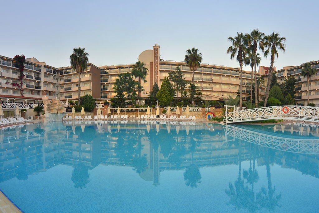 Zomer Wanneer je tussen 01-04-2026 en 14-11-2026 in deze accommodatie verblijft, is onderstaande informatie van toepassing. * Ligging * In het centrum van Kumkoy * Privéstrand op circa 300 meter * Zandstrand * Ligbedden met matrasjes * Parasol * Dichtstbijzijnde winkel op circa 50 meter * Dichtstbijzijnde restaurant op circa 50 meter * Dichtstbijzijnde bar op circa 50 meter * Side op circa 4 kilometer * Manavgat op circa 7 kilometer * Shuttleservice naar het strand * Bushalte op circa 50 meter * Algemeen & faciliteiten * 3 gebouwen * Maximaal 5 verdiepingen * 404 kamers * Receptie * 24 uur per dag * Lobby * 4 liften * Lift in elk gebouw * Bagageruimte * Wifi in diverse openbare ruimtes * Meerdere winkels * Minimarkt * Wasservice tegen betaling * Doktersservice tegen betaling * Tuin * Openbare parkeergelegenheid * Beperkt aantal plaatsen * Restaurants & bars * Buffetrestaurant * 2 à-la-carterestaurants * Italiaans restaurant * Turks restaurant * Snackbar * 4 drinkgelegenheden * Beachbar * Discobar * Lobbybar * Poolbar * Activiteiten & ontspanning * Aerobics * Beachvolleybal * Boccia * Darts * Fitness * Tafeltennis * Watersporten tegen betaling * Spafaciliteiten * Sauna * Turks stoombad * Massages tegen betaling * Schoonheidsbehandelingen tegen betaling * Discotheek * Open in het zomerseizoen * Animatie * 6 keer per week * Shows * 6 keer per week * Livemuziek * 3 keer per week * Zwembaden * 3 buitenzwembaden * Gesloten in het winterseizoen * Eén van deze zwembaden heeft 2 glijbanen * De glijbanen hebben verschillende openingsperiodes * Buitenzwembad voor kinderen * Gesloten in het winterseizoen * Binnenzwembad * Verwarmd * Binnenzwembad voor kinderen * Zonneterras * Ligbedden met matrasjes * Parasol * Badhanddoekenservice * Kinderfaciliteiten * Mini club (4-11 jaar) * Meerdere keren per week * Minidisco * Buitenspeeltuin * Babybedje op aanvraag via ons contact center * Babysitservice tegen betaling * ter plaatse op aanvraag * Verzorging * All Inclusive * Ontbijt in buffetvorm (07.00-10.00 uur) * Lunch in buffetvorm (12.30-14.00 uur) * Diner in buffetvorm (19.00-21.00 uur) * Dineren in één van de à-la-carterestaurants 1 keer per verblijf * Snacks (12.30-15.00 uur) * Koffie, thee & koekjes (15.00-16.00 uur) * IJs (15.00-16.00 uur) * Middernachtsnack (23.00-23.30 uur) * Selectie lokale (non-)alcoholische drankjes (10.00-00.00 uur) * Tegen betaling: alle consumpties in één van de bars, import drankjes, turkse koffie en verse vruchtensappenHotelkamers * 2-persoonskamer Voordeel DE * Speciaal tarief * Locatie, formaat, uitzicht en/of faciliteiten kunnen afwijken ten opzichte van andere kamertypes * Oppervlakte tussen 20 en 22 m² * Op de begane grond * Landzicht * Straatzicht * Airconditioning * Kluisje tegen betaling * Satelliettelevisie * Telefoon tegen betaling * Eet- en drinkfaciliteiten * Minibar * Badkamer douche, toilet en föhn * Balkon (zitje) * 2-persoonskamer Standaard DZ * Oppervlakte tussen 20 en 22 m² * Landzicht * Airconditioning * Kluisje tegen betaling * Satelliettelevisie * Telefoon tegen betaling * Eet- en drinkfaciliteiten * Minibar * Badkamer douche, toilet en föhn * Balkon (zitje) * 2-persoonskamer Standaard Zwembadzicht DZP * Oppervlakte tussen 20 en 22 m² * Zwembadzicht * Airconditioning * Kluisje tegen betaling * Satelliettelevisie * Telefoon tegen betaling * Eet- en drinkfaciliteiten * Minibar * Badkamer douche, toilet en föhn * Balkon (zitje) * 2-persoonskamer Comfort DJ * Oppervlakte tussen 20 en 22 m² * Op één van de hogere verdiepingen * Zwembadzicht * Airconditioning * Kluisje tegen betaling * Satelliettelevisie * Telefoon tegen betaling * Eet- en drinkfaciliteiten * Minibar * Badkamer douche, toilet en föhn * Balkon (zitje) * Gratis late uitcheck bij beschikbaarheid ter plaatse * Familiekamer Standaard FZ1 * Oppervlakte van circa 22 m² * Landzicht * 2 slaapkamers * Airconditioning * Kluisje tegen betaling * Satelliettelevisie * Telefoon tegen betaling * Eet- en drinkfaciliteiten * Minibar * Badkamer douche, toilet en föhn * Balkon (zitje) * Familiekamer Standaard FZ * Landzicht * 2 slaapkamers * Airconditioning * Kluisje tegen betaling * Satelliettelevisie * Telefoon tegen betaling * Eet- en drinkfaciliteiten * Minibar * Badkamer douche, toilet en föhn * Balkon (zitje)