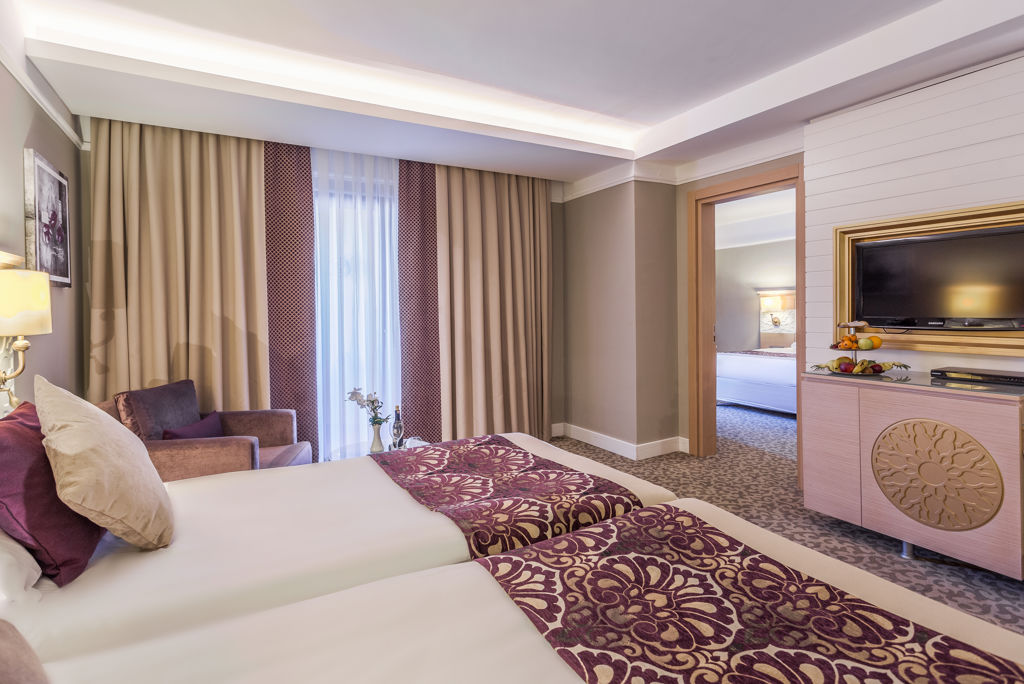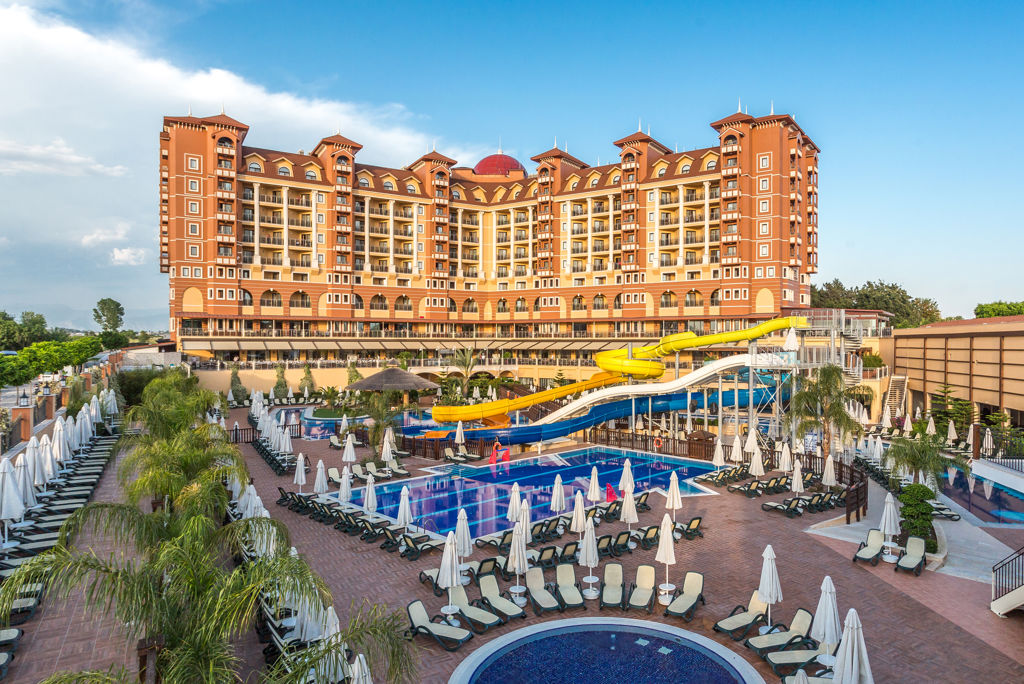 Winter Wanneer je tussen 01-11-2025 en 31-03-2026 in deze accommodatie verblijft, is onderstaande informatie van toepassing. * Ligging * In het centrum van Kumkoy * Privéstrand op circa 250 meter * Zandstrand * Ligbedden * Parasol * Dichtstbijzijnde winkel op circa 300 meter * Dichtstbijzijnde restaurant op circa 300 meter * Dichtstbijzijnde bar op circa 300 meter * Side op circa 5 kilometer * Manavgat op circa 12 kilometer * Bushalte op circa 50 meter * Algemeen & faciliteiten * 1 gebouw * Maximaal 10 verdiepingen * 334 kamers * Receptie * 24 uur per dag * Lobby * 3 liften * Bagageruimte * Wifi in alle openbare ruimtes * Meerdere winkels * Minimarkt * Wasservice tegen betaling * Doktersservice tegen betaling * Tuin * Privé parkeergelegenheid * Restaurants & bars * Buffetrestaurant * 3 à-la-carterestaurants (vooraf reserveren) tegen bijbetaling * Italiaans restaurant * Turks restaurant * Visrestaurant * Restaurant * Restaurant met verschillende specialiteiten * Gesloten in het winterseizoen * 5 drinkgelegenheden * 2 bars * 2 beachbars * Lobbybar * Activiteiten & ontspanning * Basketbal * Beachvolleybal * tussen ca. april en oktober * Biljart tegen betaling * Boccia * Darts * Fitness * Midgetgolf * Tafeltennis * Tennis * Voetbal * Volleybal * Watersporten tegen betaling * Spa Center * Sauna * Hamam behandelingen tegen betaling * Bubbelbad binnen tegen betaling * Massages tegen betaling * Schoonheidsbehandelingen tegen betaling * Gameroom * Animatie voor volwassenen * tussen ca. april en oktober * Shows * Meerdere keren per week * Livemuziek * Meerdere keren per week * Zwembaden * 2 buitenzwembaden * Gesloten in het winterseizoen * Eén van deze zwembaden heeft 3 glijbanen * De glijbanen hebben verschillende openingsperiodes * Buitenzwembad voor kinderen * Gesloten in het winterseizoen * Binnenzwembad * Gesloten in het zomerseizoen * Verwarmd tussen ca. zaterdag 1 november 2025 en dinsdag 31 maart 2026 * Binnenzwembad voor kinderen * Gesloten in het zomerseizoen * Zonneterras * Ligbedden * Parasol * Badhanddoekenservice gratis (wisselen tegen betaling) * Kinderfaciliteiten * Mini club (4-12 jaar) * 6 keer per week * Minidisco * Buitenspeeltuin * Babybedje als preferentie toe te voegen in het boekingsformulier * Verzorging * Ultra All Inclusive * Ontbijt in buffetvorm (07.30-10.00 uur) * Laat ontbijt in buffetvorm (10.00-11.00 uur) * Lunch in buffetvorm (12.30-14.00 uur) * Diner in buffetvorm (18.00-20.00 uur) * Snacks (15.30-16.30 uur) * Koffie, thee & koekjes (15.30-16.30 uur) * Middernachtsnack (00.00-07.00 uur) * Selectie geïmporteerde drankjes * Selectie lokale (non-)alcoholische drankjes (24 uur per dag) * Tegen betaling: dineren in alle à-la-carterestaurants en drankjes in flessenHotelkamers * 2-persoonskamer Voordeel DE * Speciaal tarief * Locatie kan afwijken ten opzichte van andere kamertypes * Uitzicht kan afwijken ten opzichte van andere kamertypes * Faciliteiten kunnen afwijken ten opzichte van andere kamertypes * Oppervlakte tussen 20 en 24 m² * Airconditioning * Kluisje * Televisie * Telefoon tegen betaling * Eet- en drinkfaciliteiten * Koffie- en theefaciliteiten * Minibar * Badkamer douche, toilet, föhn en badslippers * Wifi * Frans balkon * 2-persoonskamer Standaard DZ * Oppervlakte tussen 22 en 28 m² * Airconditioning * Kluisje * Televisie * Telefoon tegen betaling * Eet- en drinkfaciliteiten * Koffie- en theefaciliteiten * Minibar * Badkamer douche, toilet, föhn en badslippers * Wifi * Balkon of terras (zitje) * 2-persoonskamer Comfort Zwembadzicht DJP * Oppervlakte tussen 28 en 35 m² * Zwembadzicht * Airconditioning * Kluisje * Televisie * Telefoon tegen betaling * Eet- en drinkfaciliteiten * Koffie- en theefaciliteiten * Minibar * Badkamer douche, toilet, föhn, badjassen en badslippers * Wifi * Balkon of terras (zitje) * Fles wijn bij aankomst * Familiekamer Suite FU1 * Oppervlakte tussen 55 en 60 m² * 2 slaapkamers * Airconditioning * Kluisje * Televisie * Telefoon tegen betaling * Eet- en drinkfaciliteiten * Koffie- en theefaciliteiten * Minibar * Badkamer douche, toilet, föhn en badslippers * Wifi * Balkon of terras (zitje) * Familiekamer Suite FU2 * Oppervlakte tussen 55 en 60 m² * 2 slaapkamers * Airconditioning * Kluisje * Televisie * Telefoon tegen betaling * Eet- en drinkfaciliteiten * Koffie- en theefaciliteiten * Minibar * Badkamer douche, toilet, föhn en badslippers * Wifi * Balkon of terras (zitje) * Familiekamer Duplex FF1 * Oppervlakte tussen 55 en 60 m² * In duplexstijl * 2 slaapkamers * Eén slaapkamer * Eén slaapkamer * Airconditioning * Kluisje * Televisie * Telefoon tegen betaling * Eet- en drinkfaciliteiten * Koffie- en theefaciliteiten * Minibar * 2 badkamers * 2 badkamers met douche, toilet, föhn en badslippers * Wifi * Balkon of terras (zitje) * Familiekamer Duplex FF2 * Oppervlakte tussen 55 en 60 m² * In duplexstijl * 2 slaapkamers * Eén slaapkamer * Eén slaapkamer * Airconditioning * Kluisje * Televisie * Telefoon tegen betaling * Eet- en drinkfaciliteiten * Koffie- en theefaciliteiten * Minibar * 2 badkamers * 2 badkamers met douche, toilet, föhn en badslippers * Wifi * Balkon of terras (zitje) * Child Friendly Room CF