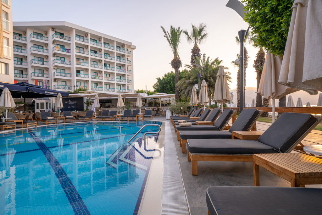 Zomer Wanneer je tussen 01-04-2026 en 31-10-2026 in deze accommodatie verblijft, is onderstaande informatie van toepassing. * Ligging * Gelegen aan het privéstrand * Zandstrand * Kiezelstrand * Ligbedden met matrasjes * Parasol * Centrum van Marmaris op circa 3 kilometer * Dichtstbijzijnde winkel op circa 100 meter * Dichtstbijzijnde restaurant op circa 100 meter * Dichtstbijzijnde bar op circa 100 meter * Barstreet op circa 4 kilometer * Jachthaven op circa 3,5 kilometer * Marmaris Castle op circa 3,5 kilometer * Algemeen & faciliteiten * Adults Only * 1 gebouw * Maximaal 6 verdiepingen * 103 kamers * Receptie * 24 uur per dag * Lobby * 2 liften * Wifi in alle openbare ruimtes * Internetruimte tegen betaling * Winkel (minimarkt) * Wasservice tegen betaling * Doktersservice tegen betaling * op aanvraag * Openbare parkeergelegenheid * Privé parkeergelegenheid * Restaurants & bars * Buffetrestaurant * Meerdere drinkgelegenheden * 2 bars * Activiteiten & ontspanning * Aerobics * Biljart tegen betaling * Boccia * Darts * Tafeltennis * Yoga * Spa Center * Sauna vooraf reserveren * Hamam vooraf reserveren * Massages tegen betaling * Schoonheidsbehandelingen tegen betaling * Fitnessruimte * Animatie voor volwassenen * Meerdere keren per week * Zwembaden * Buitenzwembad * Zonneterras * Ligbedden met matrasjes * Parasol * Badhanddoekenservice * Verzorging * All Inclusive * Ontbijt in buffetvorm (07.00-10.00 uur) * Laat ontbijt in buffetvorm (10.00-10.30 uur) * Lunch in buffetvorm (12.30-14.00 uur) * Diner in buffetvorm (19.00-21.00 uur) * Snacks (14.30-17.00 uur) * Koffie, thee & koekjes (17.00-18.00 uur) * IJs (15.00-16.00 uur) * Middernachtsnack (23.30-00.00 uur) * Selectie lokale (non-)alcoholische drankjes (10.00-00.00 uur) * Goed om te weten * Duurzaamheidslabel(s): GSTC LabelHotelkamers * 2-persoonskamer Voordeel DE * Speciaal tarief * Locatie, formaat, uitzicht en/of faciliteiten kunnen afwijken ten opzichte van andere kamertypes * 2-persoonskamer Standaard DZ * Oppervlakte circa 24 m² * Airconditioning * Kluisje tegen betaling * Televisie * Telefoon tegen betaling * Eet- en drinkfaciliteiten * Koffie- en theefaciliteiten * Minibar * Badkamer douche, toilet en föhn * Wifi * Balkon (zitje)