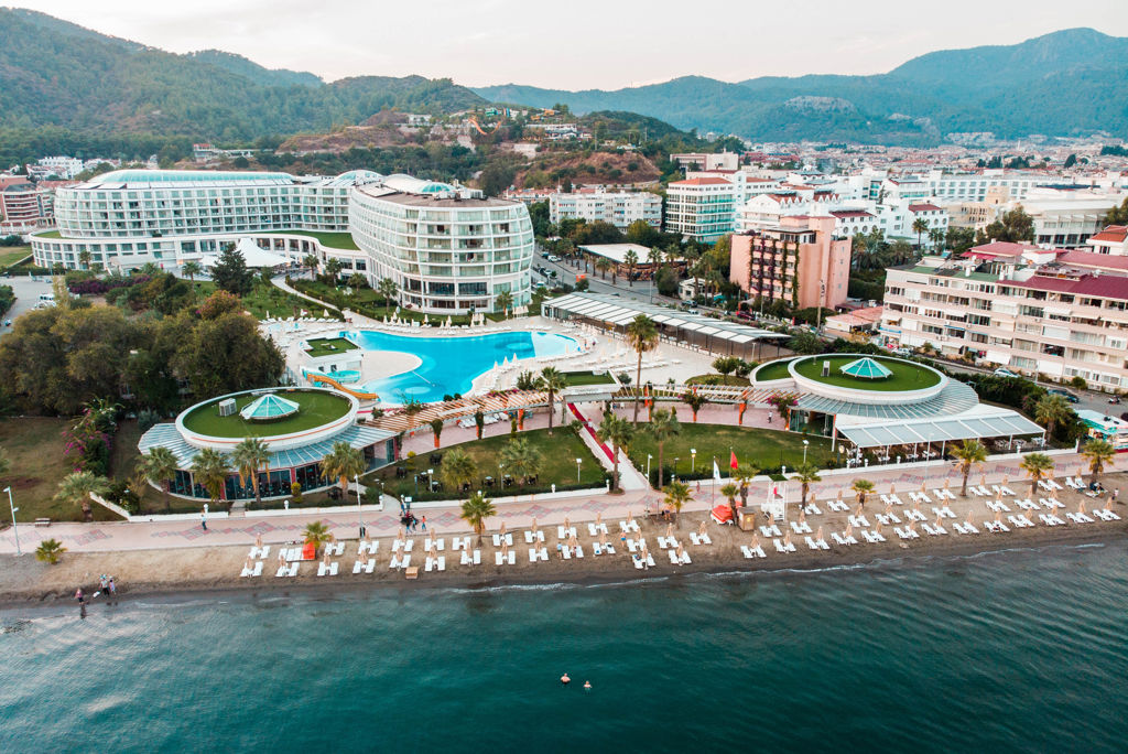 Reisperiode: 24/10/2026 • 7 nachtennVertrek: AMS → DLMnVerzorging: All InclusivenKamer: Standaardkamer landzichtn Direct naar: * Ligging () * Faciliteiten () * Restaurants & bars () * Zwembaden () * Hotelkamers () * Activiteiten & ontspanning () * Kinderfaciliteiten () * Verzorging () Ligging Green Nature Diamond in Marmaris * Op slechts 2 km van het centrum van Marmaris * Winkeltjes en restaurants in de directe omgeving * Direct gelegen aan het strand * Bushalte voor het hotel Faciliteiten Green Nature Diamond * 1 gebouw * Maximaal 8 verdiepingen * 624 kamers * 24-uursreceptie * Lobby met zitjes * Bagageruimte * 10 liften * Tuin * Winkeltjes en minimarkt* * Kapsalon* * Doktersservice* * Wasservice* * Roomservice* * Wifi in het gehele hotel * Openbare en privé parkeergelegenheid * Tegen betaling Restaurants & bars * Buffetrestaurant * Snackrestaurant * 4 à-la-carterestaurants (vooraf reserveren) * 5 bars voor een verfrissend drankje Zwembaden * 1 buitenzwembad met glijbanen (op vaste tijden geopend) * 1 buitenzwembad voor gasten vanaf 16 jaar * 1 binnenzwembad (verwarmd in de winter) * Apart kinderbad * Zonneterras * Ligbedden, matrasjes en parasols * Ligbedden, matrasjes en parasols op het strand * Badhanddoekenservice (met borg) Hotelkamers * Standaardkamer met landzicht (1-3 personen) * Modern ingericht * Ca. 28-32 m² * Airconditioning (centraal geregeld) * Satelliettelevisie * Wifi * Telefoon * Kluisje * Koffie-/theezetfaciliteiten * Minibar (dagelijks gevuld met water en fris) * Douche * Toilet * Föhn * Slippers * Balkon met zitje * Tegen een meerprijs boekbaar met zijzeezicht (1-3 personen) of zeezicht (1-3 personen) * Familiekamer (3-5 personen) * Qua faciliteiten gelijk aan de Standaardkamer * Ca. 64 m² * Zijzeezicht * 2 standaardkamers met tussendeur * Voordeelkamer (2-3 personen) * Kunnen qua ligging, faciliteiten en groote afwijken van de Standaardkamer Sport en ontspanning * Fitness * Yoga* * Aerobics * Boccia * Volleybal * Darten * Tafeltennis * Boogschieten * Biljart* * Duikcentrum* * Watersporten aan het strand* * Spa Center met sauna, binnen zwembad en Turks bad * Bubbelbad* * Massages en schoonheidsbehandelingen* * 6 dagen per week een leuk en gevarieerd animatieprogramma *Tegen betaling Kinderfaciliteiten * Apart kinderbad * Miniclub (4-12 jaar, 6 dagen per week) * Minidisco * Speeltuintje * Babybedjes (op aanvraag) Verzorging zomer : Green Nature Diamond * All inclusive: * Ontbijt in buffetvorm (07.00-10.00 uur) * Laat ontbijt in buffetvorm (10.00-10.30 uur) * Lunch in buffetvorm (12.00-13.00 uur) * Diner in buffetvorm (19.00-21.00 uur) * Diverse snacks (12.00-16.00 uur) * IJsjes (12.00-18.00 uur) * Koffie, thee en koekjes (12.00-18.00 uur) * Middernachtsnack (23.00-00.00 uur) * Alle door het hotel geselecteerde lokale alcoholische en alcoholvrije drankjes (10.00-00.00 uur) * Eénmaal gratis dineren in één van de 3 à-la-carterestaurants (vooraf reserveren, minimaal verblijf van 8 dagen) * Tegen betaling: importdrankjes, verse sappen, alle consumpties na 00.00 uur, de Spa Bar en Volo Bar, dineren in het Volo à-la-carterestaurant (vooraf reserveren) en roomservice Extra informatie: Bij deze pakketreis is een huurauto inbegrepen, daarom vervalt de transfer van de luchthaven naar de accommodatie en vice versa. De reisleiding, aanwezig op de luchthaven, verwijst je naar het autoverhuurbedrijf en geeft je een welkomstenvelop. Is je reisgezelschap te groot voor één auto? Boek dan een tweede auto bij. Voor prijzen en beschikbaarheid kun je contact opnemen met ons Contact Center. Informatie & Voorwaarden Huurauto Marmaris (Dalaman) () Informatie & Voorwaarden Huurauto Bodrum ()