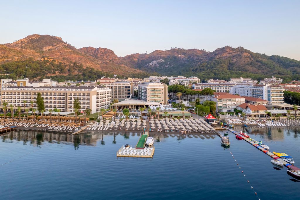 Zomer Wanneer je tussen 20-04-2026 en 31-10-2026 in deze accommodatie verblijft, is onderstaande informatie van toepassing. * Ligging * Gelegen aan het privéstrand * Ligbedden met matrasjes * Parasol * Centrum van Marmaris op circa 2 kilometer * Dichtstbijzijnde winkel op circa 20 meter * Dichtstbijzijnde restaurant op circa 20 meter * Dichtstbijzijnde bar op circa 20 meter * Bushalte op circa 15 meter * Algemeen & faciliteiten * 2 gebouwen * Maximaal 5 verdiepingen * 427 kamers * Receptie * 24 uur per dag * Lobby * 3 liften * Lift in elk gebouw * Bagageruimte * Wifi in alle openbare ruimtes * Winkel (minimarkt) * Wasservice tegen betaling * Doktersservice tegen betaling * Openbare parkeergelegenheid * Restaurants & bars * Buffetrestaurant * À-la-carterestaurant (vooraf reserveren) * Roomservice tegen betaling * 4 drinkgelegenheden * 4 bars * Activiteiten & ontspanning * Aerobics * Biljart tegen betaling * Darts * Fitness * Tafeltennis * Watersporten tegen betaling * Yoga * Spa Center * Binnenzwembad * Sauna * Turks stoombad * Massages tegen betaling * Schoonheidsbehandelingen tegen betaling * Animatie- * Zwembaden * 2 buitenzwembaden * Eén van deze zwembaden heeft een glijbaan * 2 buitenzwembaden voor kinderen * Zonneterras * Ligbedden met matrasjes * Parasol * Badhanddoekenservice * Kinderfaciliteiten * Mini club (4-12 jaar) * Minidisco * Buitenspeeltuin * Babysitservice tegen betaling * ter plaatse op aanvraag * Verzorging * All Inclusive * Ontbijt in buffetvorm (07.30-11.00 uur) * Laat ontbijt in buffetvorm (10.00-11.00 uur) * Lunch in buffetvorm (12.00-14.00 uur) * Diner in buffetvorm (19.30-21.30 uur) * Snacks (12.00-16.00 uur) * Koffie, thee & koekjes (17.00-18.00 uur) * Middernachtsnack (23.00-00.00 uur) * Selectie lokale (non-)alcoholische drankjes (10.00-00.00 uur) * Tegen betaling: dineren in het à-la-carterestaurant, IJs, drankjes in flessen, import drankjes, verse vruchtensappen en roomserviceHotelkamers * 2-persoonskamer Standaard Landzicht DZL * Oppervlakte circa 24 m² * Landzicht * Airconditioning gratis * Kluisje tegen betaling * Televisie * Telefoon tegen betaling * Eet- en drinkfaciliteiten * Koffie- en theefaciliteiten * Minibar tegen betaling * Badkamer douche, toilet en föhn * Wifi tegen betaling * Balkon (zitje) * 2-persoonskamer Standaard Zijzeezicht DZI * Oppervlakte circa 24 m² * Zijzeezicht * Airconditioning gratis * Kluisje tegen betaling * Televisie * Telefoon tegen betaling * Eet- en drinkfaciliteiten * Koffie- en theefaciliteiten * Minibar tegen betaling * Badkamer douche, toilet en föhn * Wifi tegen betaling * Balkon (zitje) * 2-persoonskamer Large Zijzeezicht DLI * Oppervlakte circa 30 m² * Zijzeezicht * Eén grote kamer * Airconditioning gratis * Kluisje tegen betaling * Televisie * Telefoon tegen betaling * Eet- en drinkfaciliteiten * Koffie- en theefaciliteiten * Minibar tegen betaling * Badkamer bad of douche, toilet en föhn * Wifi tegen betaling * Balkon (zitje)