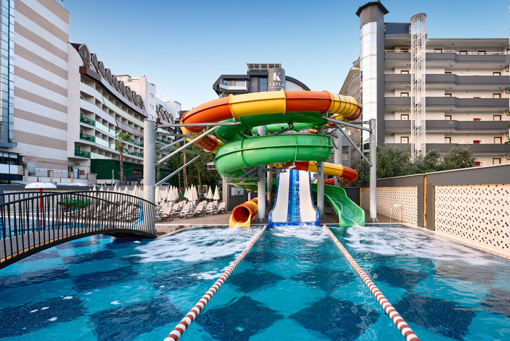 Direct naar: * Ligging () * Faciliteiten () * Restaurants & bars () * Zwembaden () * Hotelkamers () * Activiteiten & ontspanning () * Kinderfaciliteiten () * Verzorging () Ligging Kaila Beach Hotel * Op ca. 50 meter van het privéstrand * Op ca. 3 kilometer van het centrum van Alanya * Restaurants en bars op ca. 50 meter * Winkels op ca. 100 meter * Bushalte op ca. 50 meter Faciliteiten * 3 gebouwen (blok A nieuwste, blok B en blok C) met maximaal 6 verdiepingen * In elk gebouw is een lift aanwezig * 363 kamers * 24-uursreceptie * Lobby * Bagageruimte * Wifi * Roomservice* * Winkeltje en minimarkt* * Wasservice* * Doktersservice* * Kapsalon* * Openbare en privé parkeergelegenheid *Tegen betaling Restaurants & bars * 1 buffetrestaurant * 1 à-la-carterestaurant (vooraf reserveren) * 1 snackrestaurant * 6 bars Zwembaden * 2 buitenzwembaden * 1 buitenzwembad met 3 glijbanen (geopend van 10.00-12.00 en 14.00-16.00 uur) * 1 binnenzwembad (verwarmd) * Zonneterras * Privéstrand * Ligbedden en parasols gratis (zwembad en strand) * Badhanddoekenservice (met borg) Hotelkamers * Standaardkamer (1-4 personen) * Gelegen in blok B of C * Ca. 28-32 m² * Telefoon* * Airconditioning * Televisie * Minibar (gevuld met water) * Kluisje* * Koffie-/theezetfaciliteiten * Wifi * Douche * Toilet * Föhn * Balkon of terras met zitje * Tegen een meerprijs boekbaar met zijzeezicht *Tegen betaling * Kindvriendelijke kamer (2 volw. + 2 kind.) * Gelegen in blok B of C * Ca. 28-32 m² * Dezelfde faciliteiten als de Standaardkamer * De kinderen verblijven gratis op de kamer * Deluxe kamer (1-3 personen) * Gelegen in blok A * Ca. 24 m² * Dezelfde faciliteiten als de Standaardkamer * Familiekamer (3-5 personen) * Gelegen in blok B of C * Ca. 45 m² * Bestaat uit 1 ruimte * Dezelfde faciliteiten als de Standaardkamer * Familiekamer Deluxe (3-5 personen) * Gelegen in blok A of B * Ca. 45 m² * Bestaat uit 2 ruimtes * Dezelfde faciliteiten als de Standaardkamer * Familiekamer Duplex (3-5 personen) * Gelegen in blok B * Ca. 38 m² * In duplex stijl * Beschikt over 2 badkamers * Dezelfde faciliteiten als de Standaardkamer Activiteiten & ontspanning * Fitness * Aerobics * Yoga * Darts * Tafeltennis * Watersporten aan het strand* * Turks bad * Sauna * Binnenzwembad * Massages en behandelingen* * 6x per week entertainment * Livemuziek 2x per week * Shows 2x per week *Tegen betaling Kinderfaciliteiten * 1 kinderzwembad * Miniclub (4-12 jaar) 6 dagen per week * Speeltuin * Minidisco 6 dagen per week * Babybedjes (op aanvraag en op basis van beschikbaarheid) Verzorging Zomer: Kaila Beach Hotel * Verblijf o.b.v. All Inclusive: * Ontbijt in buffetvorm (07.00-10.00 uur) * Laat ontbijt in buffetvorm (10.00-10.30 uur) * Lunch in buffetvorm (12.30-14.00 uur) * Diner in buffetvorm (19.00-21.00 uur) * Diverse snacks (11.00-18.00 uur) * Koffie/thee en koekjes (11.00-16.30 uur) * IJs (15.00-17.00 uur) * Middernachtsnack (23.30-00.00 uur) * Tijdens je verblijf mag je 1x à-la-carte dineren (vooraf reserveren) * Geselecteerde lokale (non-)alcoholische dranken (07.00-00.00 uur) * Tegen betaling: import drankjes, roomservice, de Beach bar, verse vruchtensappen, Turkse koffie en alles na 00.00 uur Extra informatie: Bij deze pakketreis is een huurauto inbegrepen, daarom vervalt de transfer van de luchthaven naar de accommodatie en vice versa. De reisleiding, aanwezig op de luchthaven, verwijst je naar het autoverhuurbedrijf en geeft je een welkomstenvelop. Is je reisgezelschap te groot voor één auto? Boek dan een tweede auto bij. Voor prijzen en beschikbaarheid kun je contact opnemen met ons Contact Center. Informatie & Voorwaarden Huurauto Alanya () Informatie & Voorwaarden Huurauto Antalya ()