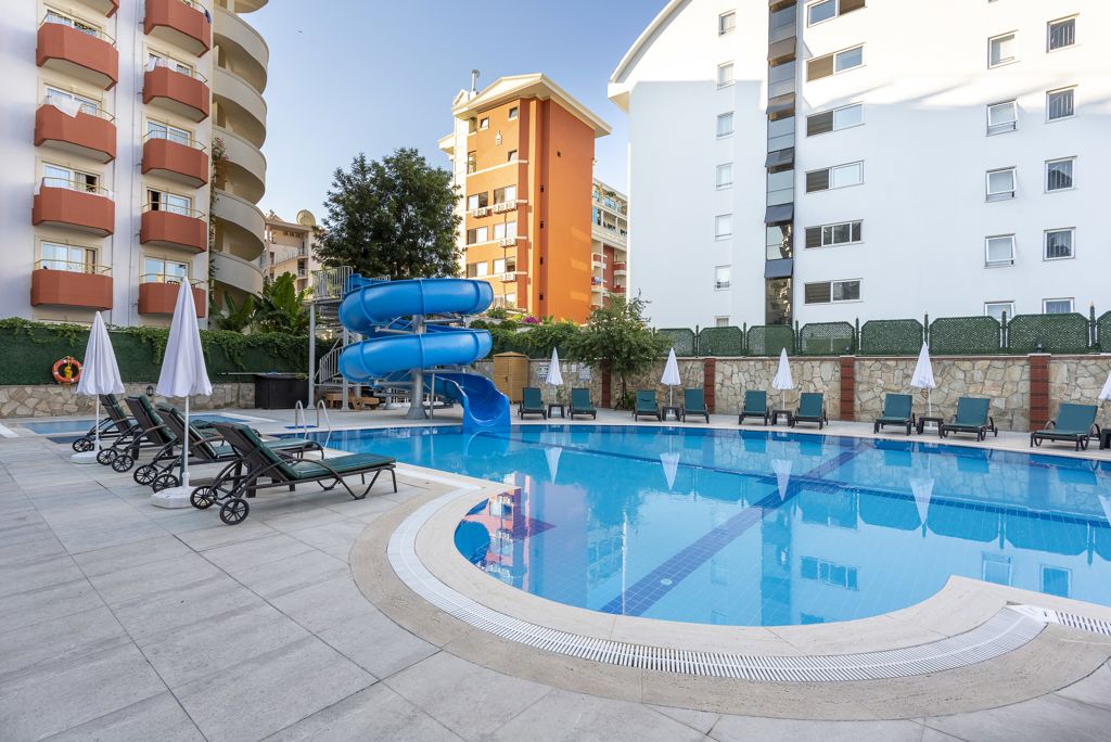 Winter Wanneer je tussen 01-11-2025 en 31-03-2026 in deze accommodatie verblijft, is onderstaande informatie van toepassing. * Ligging * Openbaar strand op circa 150 meter * Dichtstbijzijnde winkel op circa 50 meter * Dichtstbijzijnde restaurant op circa 100 meter * Dichtstbijzijnde bar op circa 100 meter * Alanya op circa 3,5 kilometer * Bushalte op circa 100 meter * Taxistandplaats op circa 25 meter * Algemeen & faciliteiten * 1 gebouw * Maximaal 5 verdiepingen * 123 kamers * Receptie * 24 uur per dag * Lobby * 2 liften * Wifi in alle openbare ruimtes * Wasservice tegen betaling * Doktersservice tegen betaling * Tuin * Openbare parkeergelegenheid * Restaurants & bars * Buffetrestaurant * Roomservice tegen betaling * 2 drinkgelegenheden * Bar * Poolbar * Activiteiten & ontspanning * Fitness * Watersporten tegen betaling * Spafaciliteiten * Sauna * Hamam * Massages tegen betaling * Shows * Eén keer per week * Livemuziek * Eén keer per week * Zwembaden * Buitenzwembad * Glijbaan * Buitenzwembad voor kinderen * Zonneterras * Ligbedden met matrasjes * Parasol * Badhanddoekenservice * Kinderfaciliteiten * Babybedje als preferentie toe te voegen in het boekingsformulier * Verzorging * All Inclusive * Ontbijt in buffetvorm (07.00-09.00 uur) * Laat ontbijt in buffetvorm (09.00-10.00 uur) * Lunch in buffetvorm (12.30-14.00 uur) * Diner in buffetvorm (18.30-20.30 uur) * Koffie, thee & koekjes (16.00-17.00 uur) * Selectie lokale (non-)alcoholische drankjes (10.00-23.00 uur) * Tegen betaling: import drankjes, cocktails, turkse koffie, verse vruchtensappen, energiedranken en roomserviceHotelkamers * 2-persoonskamer Standaard DZ * Oppervlakte van circa 28 m² * Airconditioning * Kluisje tegen betaling * Televisie * Telefoon tegen betaling * Eet- en drinkfaciliteiten * Koffie- en theefaciliteiten * Minibar * Bij aankomst gevuld met water * Badkamer met douche, toilet en föhn * Wifi * Balkon (zitje) * 2-persoonskamer Large DL * Oppervlakte van circa 38 m² * Eén grote kamer * Airconditioning * Kluisje tegen betaling * Televisie * Telefoon tegen betaling * Eet- en drinkfaciliteiten * Koffie- en theefaciliteiten * Minibar * Bij aankomst gevuld met water * Badkamer met douche, toilet en föhn * Wifi * Balkon (zitje) * 2-persoonskamer Large DL1 * Oppervlakte van circa 38 m² * Eén grote kamer * Airconditioning * Kluisje tegen betaling * Televisie * Telefoon tegen betaling * Eet- en drinkfaciliteiten * Koffie- en theefaciliteiten * Minibar * Bij aankomst gevuld met water * Badkamer met douche, toilet en föhn * Wifi * Balkon (zitje) * 2-persoonskamer Large DL2 * Oppervlakte van circa 38 m² * Eén grote kamer * Airconditioning * Kluisje tegen betaling * Televisie * Telefoon tegen betaling * Eet- en drinkfaciliteiten * Koffie- en theefaciliteiten * Minibar * Bij aankomst gevuld met water * Badkamer met douche, toilet en föhn * Wifi * Balkon (zitje) * Familiekamer Standaard FZ * Oppervlakte van circa 42 m² * 2 slaapkamers * Airconditioning * Kluisje tegen betaling * Televisie * Telefoon tegen betaling * Eet- en drinkfaciliteiten * Koffie- en theefaciliteiten * Minibar * Bij aankomst gevuld met water * Badkamer met douche, toilet en föhn * Wifi * Balkon (zitje)
