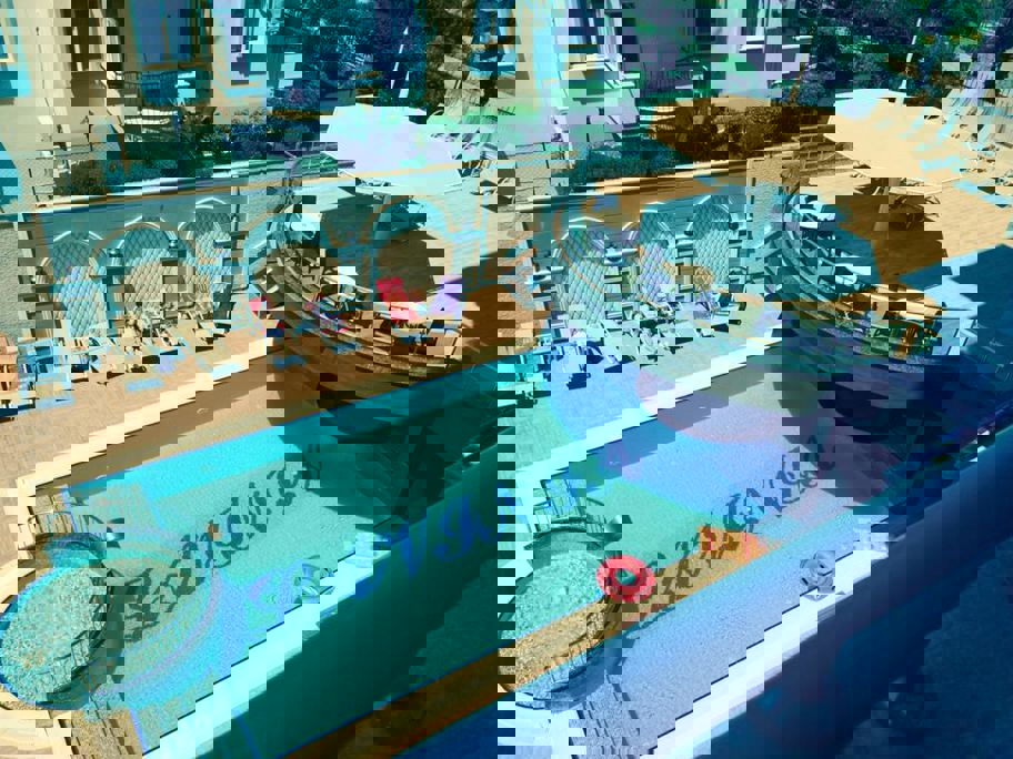 Zomer Wanneer je tussen 01-05-2026 en 31-10-2026 in deze accommodatie verblijft, is onderstaande informatie van toepassing. * Ligging * Openbaar strand Kleopatra op circa 4 kilometer * Openbaar strand Portakal op circa 300 meter * Rotsstrand * Dichtstbijzijnde winkel op circa 100 meter * Dichtstbijzijnde restaurant op circa 100 meter * Dichtstbijzijnde bar op circa 300 meter * Alanya op circa 3 kilometer * Ataturk Anit op circa 1,5 kilometer * Bushalte op circa 200 meter * Algemeen & faciliteiten * 1 gebouw * Maximaal 6 verdiepingen * 66 kamers * Receptie * Lobby met zitgedeelte * Lift * Bagageruimte * Wifi in alle openbare ruimtes * Winkel (minimarkt) * Wasservice tegen betaling * Doktersservice tegen betaling * Kleine tuin * Openbare parkeergelegenheid * Restaurants & bars * À-la-carterestaurant * Roomservice tegen betaling * Drinkgelegenheid * Poolbar * Activiteiten & ontspanning * Spafaciliteiten * Sauna * Hamam * Bubbelbad binnen * Massages tegen betaling * Zwembaden * Buitenzwembad * Open in het zomerseizoen * Buitenzwembad voor kinderen * Open in het zomerseizoen * Zonneterras * Ligbedden * Parasol * Verzorging * Logies * Logies & Ontbijt * Ontbijt à la carteHotelkamers * 2-kamerappartement 2A * Oppervlakte van circa 35 m² * Woon-/slaapkamer * Slaapbank voor één persoon * Eén slaapkamer * Airconditioning tegen betaling * Kluisje tegen betaling * Satelliettelevisie * Telefoon tegen betaling * Kitchenette * 2-pits kooktoestel * Koelkast * Badkamer douche, toilet en föhn * Wifi * Balkon of terras (zitje)