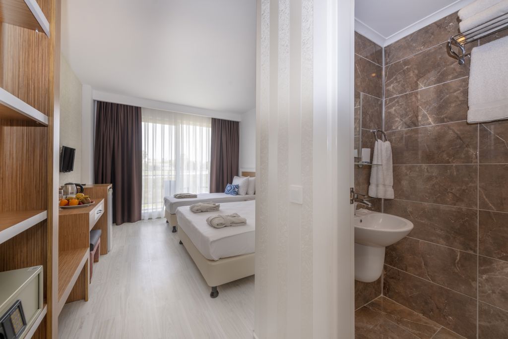 Reisperiode: 01/04/2026 • 7 nachtennVertrek: AMS → AYTnVerzorging: Logies en ontbijtnKamer: Standaardkamern Direct naar: * Ligging () * Faciliteiten () * Restaurants & bars () * Zwembaden () * Hotelkamers () * Activiteiten & ontspanning () * Kinderfaciliteiten () * Verzorging () Ligging: A Hotel Side * Strand op ca. 1 kilometer * Centrum van Side op ca. 1,5 kilometer * Ca. 2 kilometer van Manavgat * Dichtstbijzijnde winkel op ca. 200 meter * Dichtstbijzijnde restaurants en bars op ca. 300 meter * Bushalte op ca. 500 meter * Een waterval op ca. 9,5 kilometer * Gratis shuttleservice naar het strand Faciliteiten * 1 gebouw met maximaal 3 verdiepingen * 4 liften * 48 kamers * 1 lift * 24-uursreceptie * Lobby * Bagageruimte * Wifi * Roomservice* * Wasservice* * Doktersservice* * Openbare parkeergelegenheid *Tegen betaling Restaurants & bars * 1 buffetrestaurant voor het ontbijt * 1 à-la-carterestaurant * 1 bar Zwembaden * 1 buitenzwembad * Zonneterras * Ligbedden, badhanddoekenservice en parasols gratis (zwembad en strand) Hotelkamers * Standaardkamer (1-2 personen) * Ca. 20 m² * Telefoon* * Airconditioning * Televisie * Minibar* * Kluisje* * Koffie-/theezetfaciliteiten * Wifi * Douche * Toilet * Föhn * Slippers * Balkon of terras met zitje * De standaardkamer large (2-4 personen) heeft dezelfde faciliteiten, maar is ca. 25 m² *Tegen betaling * Familiekamer (4 personen) * Ca. 30 m² * Bestaat uit 1 grote ruimte * 2-persoonsbed en een stapelbed * Dezelfde faciliteiten als de Standaardkamer Activiteiten & ontspanning * Darts * Tafelvoetbal* *Tegen betaling Kinderfaciliteiten * 1 kindergedeelte in het buitenzwembad * Kinderentertainment (6 dagen per week) * Babybedjes (op aanvraag en op basis van beschikbaarheid) Verzorging Zomer: A Hotel Side * Verblijf o.b.v. Logies & Ontbijt: ontbijt in buffetvorm Extra informatie: Bij deze pakketreis is een huurauto inbegrepen, daarom vervalt de transfer van de luchthaven naar de accommodatie en vice versa. De reisleiding, aanwezig op de luchthaven, verwijst je naar het autoverhuurbedrijf en geeft je een welkomstenvelop. Is je reisgezelschap te groot voor één auto? Boek dan een tweede auto bij. Voor prijzen en beschikbaarheid kun je contact opnemen met ons Contact Center. Informatie & Voorwaarden Huurauto ()