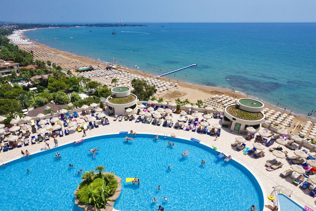 Zomer Wanneer je tussen 01-04-2026 en 31-10-2026 in deze accommodatie verblijft, is onderstaande informatie van toepassing. * Ligging * Gelegen aan het privéstrand * Ligbedden * Parasol * Dichtstbijzijnde winkel op circa 100 meter * Dichtstbijzijnde restaurant op circa 100 meter * Dichtstbijzijnde bar op circa 100 meter * Side op circa 2 kilometer * Manavgat op circa 8 kilometer * Bushalte op circa 100 meter * Algemeen & faciliteiten * 1 gebouw * Maximaal 8 verdiepingen * 304 kamers * Receptie * 24 uur per dag * Lobby * 6 liften * Bagageruimte * Wifi in alle openbare ruimtes * 3 winkels * Minimarkt * Wasservice tegen betaling * Doktersservice tegen betaling * Tuin * Openbare parkeergelegenheid * Restaurants & bars * Buffetrestaurant * Meerdere à-la-carterestaurants (vooraf reserveren) * Restaurant met verschillende specialiteiten Eén keer per week gratis dineren in dit óf een ander geselecteerd à-la-carterestaurant * Turks restaurant * Visrestaurant Eén keer per week gratis dineren in dit óf een ander geselecteerd à-la-carterestaurant * Roomservice tegen betaling * 4 drinkgelegenheden * Beachbar * Gesloten in het winterseizoen * Discobar * Lobbybar * Poolbar * Activiteiten & ontspanning * Aerobics * Basketbal * Beachvolleybal * Biljart * Boccia * Darts * Fitness * Midgetgolf * Squash * Tafeltennis * Tafelvoetbal * Tennis * Watersporten tegen betaling * Yoga * Spafaciliteiten * Sauna * Hamam * Bubbelbad binnen * Massages tegen betaling * Schoonheidsbehandelingen tegen betaling * Discotheek * Animatie * 6 keer per week * Shows * 6 keer per week * Livemuziek * 2 keer per week * Zwembaden * Buitenzwembad * Buitenzwembad voor kinderen * Aquapark * In de directe omgeving van de accommodatie * 4 glijbanen * Open tussen * Binnenzwembad * Verwarmd * Binnenzwembad voor kinderen * Zonneterras * Ligbedden met matrasjes * Parasol * Badhanddoekenservice * Kinderfaciliteiten * Mini club (4-12 jaar) * 6 keer per week * Teenage club (12-16 jaar) * Minidisco * Buitenspeeltuin * Babybedje * Verzorging * Ultra All Inclusive * Ontbijt in buffetvorm (07.00-10.00 uur) * Laat ontbijt in buffetvorm (10.00-11.00 uur) * Lunch in buffetvorm (12.30-14.30 uur) * Diner in buffetvorm (19.00-21.00 uur) * Dineren in één van de à-la-carterestaurants 1 keer per verblijf * Snacks (12.30-16.00 uur) * Koffie, thee & koekjes (16.30-17.30 uur) * IJs (12.00-16.30 uur) * Middernachtsnack (23.00-07.00 uur) * Selectie lokale (non-)alcoholische drankjes * Tegen betaling: import drankjes, verse vruchtensappen en roomservice * Goed om te weten * Duurzaamheidslabel(s): Green KeyHotelkamers * 2-persoonskamer Standaard Tuinzicht DZG * Oppervlakte circa 20 m² * Tuinzicht * Airconditioning * Kluisje * Satelliettelevisie * Telefoon tegen betaling * Eet- en drinkfaciliteiten * Koffie- en theefaciliteiten * Minibar * Badkamer douche, toilet, föhn en badslippers * Wifi * Balkon of terras (zitje) * 2-persoonskamer Standaard Zijzeezicht DZI * Oppervlakte circa 20 m² * Zijzeezicht * Airconditioning * Kluisje * Satelliettelevisie * Telefoon tegen betaling * Eet- en drinkfaciliteiten * Koffie- en theefaciliteiten * Minibar * Badkamer douche, toilet, föhn en badslippers * Wifi * Balkon of terras (zitje) * 2-persoonskamer Standaard Zeezicht DZM * Oppervlakte circa 20 m² * Zeezicht * Airconditioning * Kluisje * Satelliettelevisie * Telefoon tegen betaling * Eet- en drinkfaciliteiten * Koffie- en theefaciliteiten * Minibar * Badkamer douche, toilet, föhn en badslippers * Wifi * Balkon of terras (zitje) * 2-persoonskamer Large DL * Oppervlakte circa 25 m² * Airconditioning * Kluisje * Satelliettelevisie * Telefoon tegen betaling * Eet- en drinkfaciliteiten * Koffie- en theefaciliteiten * Minibar * Badkamer douche, toilet, föhn en badslippers * Wifi * Balkon of terras (zitje)