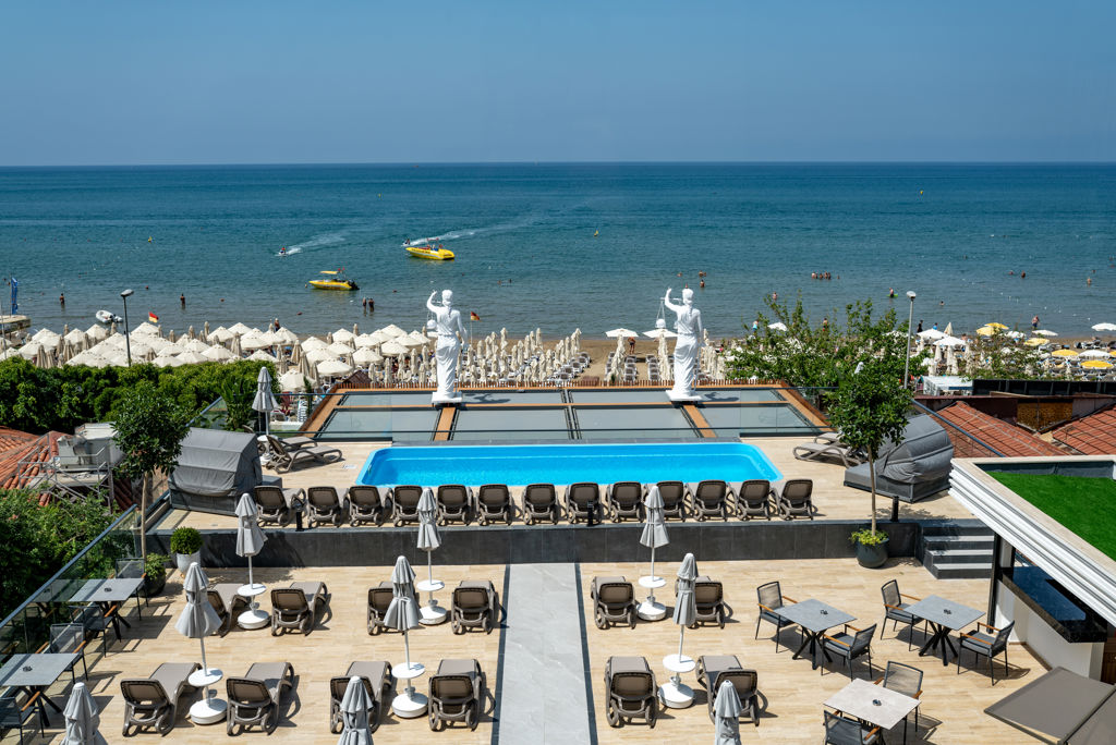 Zomer Wanneer je tussen 01-04-2026 en 31-10-2026 in deze accommodatie verblijft, is onderstaande informatie van toepassing. * Ligging * Gelegen aan het privéstrand * Zandstrand * Ligbedden * Parasol * Dichtstbijzijnde winkel op circa 30 meter * Dichtstbijzijnde restaurant op circa 30 meter * Dichtstbijzijnde bar op circa 30 meter * Side op circa 500 meter * Bushalte op circa 100 meter * Algemeen & faciliteiten * Adults Only * 1 gebouw * Maximaal 4 verdiepingen * 31 kamers * Receptie * 24 uur per dag * Lobby * Lift * Wifi in alle openbare ruimtes * Restaurants & bars * À-la-carterestaurant * Restaurant met internationale specialiteiten * Roomservice tegen betaling * Drinkgelegenheid * Bar * Activiteiten & ontspanning * Watersporten tegen betaling * Zwembaden * Buitenzwembad * Zonneterras * Ligbedden * Parasol * BadhanddoekenserviceHotelkamers * 2-persoonskamer Standaard DZ * Oppervlakte van circa 22 m² * Landzicht * Airconditioning * Kluisje * Televisie * Telefoon tegen betaling * Eet- en drinkfaciliteiten * Koffie- en theefaciliteiten * Minibar * Badkamer inloopdouche, toilet, föhn en badslippers * Wifi * Balkon of terras (zitje)