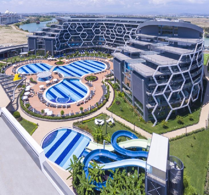 Zomer Wanneer je tussen 10-04-2026 en 15-11-2026 in deze accommodatie verblijft, is onderstaande informatie van toepassing. * Ligging * In het centrum van Sorgun * Privéstrand op circa 250 meter * Weg tussen het strand en de accommodatie * Ligbedden gratis * Parasol gratis * Side op circa 7 kilometer * Bushalte op circa 150 meter * Algemeen & faciliteiten * 1 gebouw * Maximaal 10 verdiepingen * 455 kamers * Receptie * 24 uur per dag * Lobby * 4 liften * Bagageruimte * Wifi in diverse openbare ruimtes * Meerdere winkels * Minimarkt * Wasservice tegen betaling * Doktersservice tegen betaling * Restaurants & bars * Buffetrestaurant * 3 à-la-carterestaurants * 2 snackbars * Patisserie * Roomservice tegen betaling * 7 drinkgelegenheden * 5 bars * Activiteiten & ontspanning * Aerobics * Beachvolleybal * Biljart * Boccia * Darts * Fitness * Midgetgolf * Tafeltennis * Tafelvoetbal * Spafaciliteiten * Sauna * Turks stoombad * Bubbelbad binnen * Massages tegen betaling * Discotheek * Gameroom toegang tegen betaling * Animatie * Meerdere keren per week * Zwembaden * 3 buitenzwembaden * Eén van deze zwembaden heeft meerdere glijbanen * Buitenzwembad voor kinderen * Glijbaan * Binnenzwembad voor kinderen * Zonneterras * Ligbedden gratis * Parasol gratis * Badhanddoekenservice gratis * Kinderfaciliteiten * Mini club (4-12 jaar) * 6 keer per week * Minidisco * 6 keer per week * Buitenspeeltuin * Babybedje op aanvraag via ons contact center * Verzorging * All Inclusive * Ontbijt in buffetvorm (07.00-10.00 uur) * Laat ontbijt in buffetvorm (10.00-11.00 uur) * Lunch in buffetvorm (12.30-14.30 uur) * Diner in buffetvorm (19.00-21.00 uur) * Dineren in één van de à-la-carterestaurants (1x bij een verblijf van minimaal 7 nachten) 1 keer per verblijf bij een verblijf van minimaal 7 dagen * Snacks (12.00-16.00 uur) * Koffie, thee & koekjes (11.00-18.00 uur) * IJs (15.00-17.00 uur) * Middernachtsnack (22.00-02.00 uur) * Selectie geïmporteerde alcoholische drankjes (10.00-00.00 uur) * Selectie geïmporteerde niet-alcoholische drankjes (10.00-00.00 uur) * Selectie lokale (non-)alcoholische drankjes (10.00-00.00 uur) * Tegen betaling: drankjes in flessen, import drankjes, speciale wijnen, verse vruchtensappen, energiedranken en roomserviceHotelkamers * 2-persoonskamer Voordeel DE * 2-persoonskamer Standaard Landzicht DZL * 2-persoonskamer Standaard Zijzeezicht DZI * 2-persoonskamer Standaard Zeezicht DZM * 2-persoonskamer Standaard Rivierzicht DZR * Familiekamer Standaard FZ