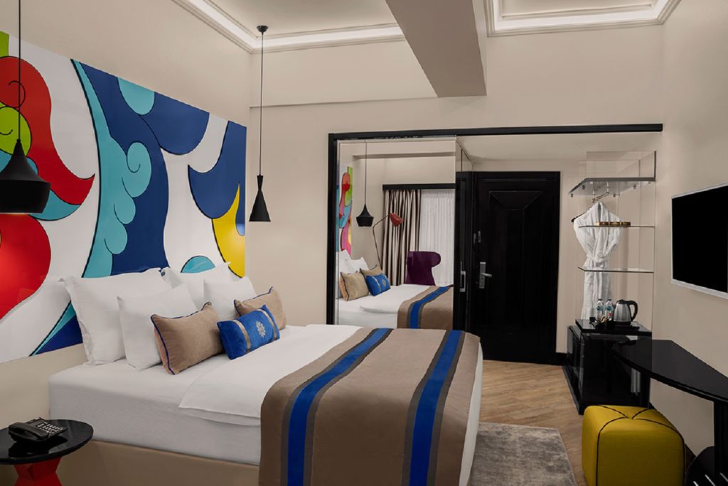 Direct naar: * Ligging () * Faciliteiten () * Restaurants & bars () * Zwembaden () * Hotelkamers () * Activiteiten & ontspanning () * Verzorging () * Ligging Sura Hagia Sophia Hotel & Spa * Gelegen in de wijk Sultanahmet * Istanbul Modern Art Museum op ca. 2 kilometer * Hagia Sophia Museum op ca. 300 meter * Hippodrome op ca 300 meter * Suleymaniye Moskee op ca. 1,3 kilometer * Tramstation op ca. 150 meter Faciliteiten * 1 gebouw met meerdere verdiepingen * Liften * 254 kamers * 24-uursreceptie * Lobby * Bagageruimte * Tuin * Wifi * Roomservice* * Wasservice* * Doktersservice* * Privé parkeergelegenheid *Tegen betaling Bij het inchecken wordt een borg gevraagd, die uitsluitend met een geldige creditcard kan worden voldaan. Restaurants & bars * 5 restaurants * 1 café Zwembaden * 1 buitenzwembad (gesloten in de winter) * Zonneterras met ligbedden en parasols Hotelkamers * Standaardkamer (1-3 personen) * Ca. 22 m² * Telefoon* * Airconditioning * Televisie * Minibar* * Koelkastje * Kluisje * Waterkoker * Wifi * Douche * Toilet * Föhn * Tegen een meerprijs boekbaar als comfort of superior kamer (1-2 personen), deze zijn luxer ingericht en/of groter *Tegen betaling Activiteiten & ontspanning * Fitness * Turks bad* * Sauna* * Massages en behandelingen* *Tegen betaling Verzorging: Sura Hagia Sophia Hotel & Spa * Verblijf o.b.v. Logies