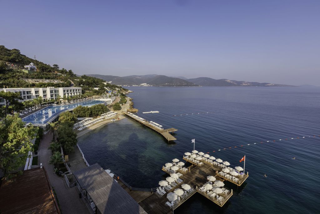 Zomer Wanneer je tussen 01-05-2026 en 30-10-2026 in deze accommodatie verblijft, is onderstaande informatie van toepassing. * Ligging * Gelegen op een heuvel * Gelegen aan het privéstrand * Zandstrand * Kiezelstrand * Ligbedden met matrasjes * Parasol * Centrum van Torba op circa 5 kilometer * Dichtstbijzijnde winkel op circa 10 kilometer * Dichtstbijzijnde restaurant op circa 5 kilometer * Dichtstbijzijnde bar op circa 10 kilometer * Bodrum op circa 10 kilometer * Bushalte op circa 10 meter * Algemeen & faciliteiten * 3 gebouwen * Maximaal 3 verdiepingen * 350 kamers * Receptie * 24 uur per dag * 3 liften * Lift in elk gebouw * Bagageruimte * Wifi in alle openbare ruimtes * 2 winkels * Minimarkt * Wasservice tegen betaling * Doktersservice tegen betaling * op aanvraag * Privé parkeergelegenheid * Restaurants & bars * Buffetrestaurant * 3 à-la-carterestaurants (vooraf reserveren) * Italiaans restaurant tegen bijbetaling * Turks restaurant tegen bijbetaling * Visrestaurant * 6 drinkgelegenheden * Bar * 2 beachbars * Lobbybar * 2 poolbars * Activiteiten & ontspanning * Aerobics * Basketbal * Darts * Fitness * Tafeltennis * Watersporten tegen betaling * Yoga * Spa Center * Binnenzwembad * Open tussen ca. vrijdag 1 mei 2026 en zondag 31 mei 2026 & donderdag 1 oktober 2026 en zaterdag 31 oktober 2026 * Sauna * Hamam behandelingen tegen betaling * Massages tegen betaling * Schoonheidsbehandelingen tegen betaling * Animatie voor volwassenen * 7 keer per week * Shows * 7 keer per week * Livemuziek * 2 keer per week * Zwembaden * 5 buitenzwembaden * Eén van deze zwembaden heeft 4 glijbanen * De glijbanen hebben verschillende openingsperiodes * 2 buitenzwembaden voor kinderen * Zonneterras * Ligbedden met matrasjes * Parasol * Badhanddoekenservice * Kinderfaciliteiten * Mini club (4-12 jaar) * 6 keer per week * Minidisco * Buitenspeeltuin * Babybedje als preferentie toe te voegen in het boekingsformulier * Verzorging * Ultra All Inclusive * Ontbijt in buffetvorm (07.00-10.00 uur) * Laat ontbijt in buffetvorm (10.00-10.30 uur) * Lunch in buffetvorm (12.30-14.00 uur) * Diner in buffetvorm (19.00-21.30 uur) * Dineren in één van de à-la-carterestaurants 1 keer per verblijf bij een verblijf van minimaal 7 nachten * Snacks (12.00-17.00 uur) * Koffie, thee & koekjes (17.00-19.00 uur) * IJs (16.00-17.00 uur) * Middernachtsnack (00.00-02.00 uur) * Selectie geïmporteerde drankjes * Selectie lokale (non-)alcoholische drankjes (24 uur per dag) * Verse vruchtensappen (07.00-10.00 uur) * Tegen betaling: dineren in enkele à-la-carterestaurants, alle consumpties in de discotheek, overige geïmporteerde drankjes en energiedranken * Goed om te weten * Deze accommodatie is niet geschikt voor mensen die slecht ter been zijn * Deze accommodatie heeft veel hoogteverschillen * Duurzaamheidslabel(s): Green KeyHotelkamers * 2-persoonskamer Club DC * Oppervlakte van circa 20 m² * Airconditioning * Kluisje * Televisie * Telefoon tegen betaling * Eet- en drinkfaciliteiten * Koffie- en theefaciliteiten * Minibar * Badkamer inloopdouche, toilet en föhn * Wifi * Geen balkon of terras * 2-persoonskamer Club Zeezicht DCM * Oppervlakte van circa 20 m² * Zeezicht * Airconditioning * Kluisje * Televisie * Telefoon tegen betaling * Eet- en drinkfaciliteiten * Koffie- en theefaciliteiten * Minibar * Badkamer inloopdouche, toilet en föhn * Wifi * Balkon of terras * 2-persoonskamer Deluxe DD * Oppervlakte van circa 40 m² * Zeezicht * Airconditioning * Kluisje * Televisie * Telefoon tegen betaling * Eet- en drinkfaciliteiten * Koffie- en theefaciliteiten * Minibar * Badkamer inloopdouche, toilet, föhn en badslippers * Wifi * Balkon * Familiekamer Club Landzicht FCL * Oppervlakte van circa 35 m² * Tuinzicht * 2 slaapkamers * Airconditioning * Kluisje * Televisie * Telefoon tegen betaling * Eet- en drinkfaciliteiten * Koffie- en theefaciliteiten * Minibar * Badkamer inloopdouche, toilet en föhn * Wifi * Geen balkon of terras * Familiekamer Deluxe Zeezicht FDM * Oppervlakte van circa 55 m² * Zeezicht * 2 slaapkamers * Airconditioning * Kluisje * Televisie * Telefoon tegen betaling * Eet- en drinkfaciliteiten * Koffie- en theefaciliteiten * Minibar * Badkamer douche, toilet, föhn en badslippers * Wifi * Balkon